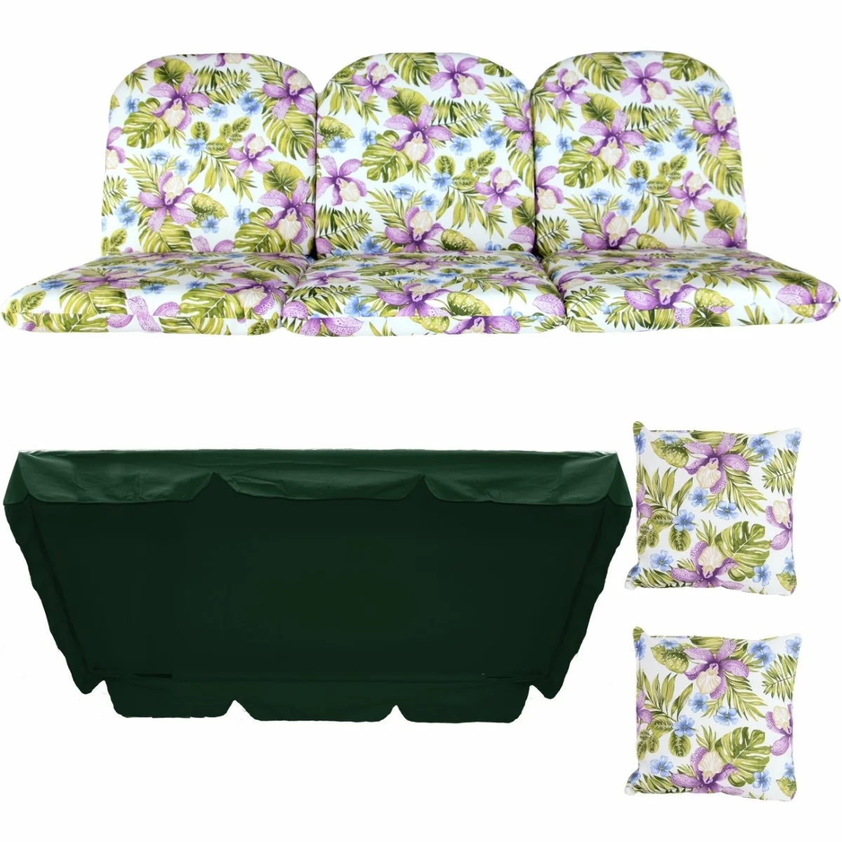 Zestaw KOMFORT na Huśtawkę Ogrodową Poduchy 180cm + 2 Jaśki + Daszek 120X214