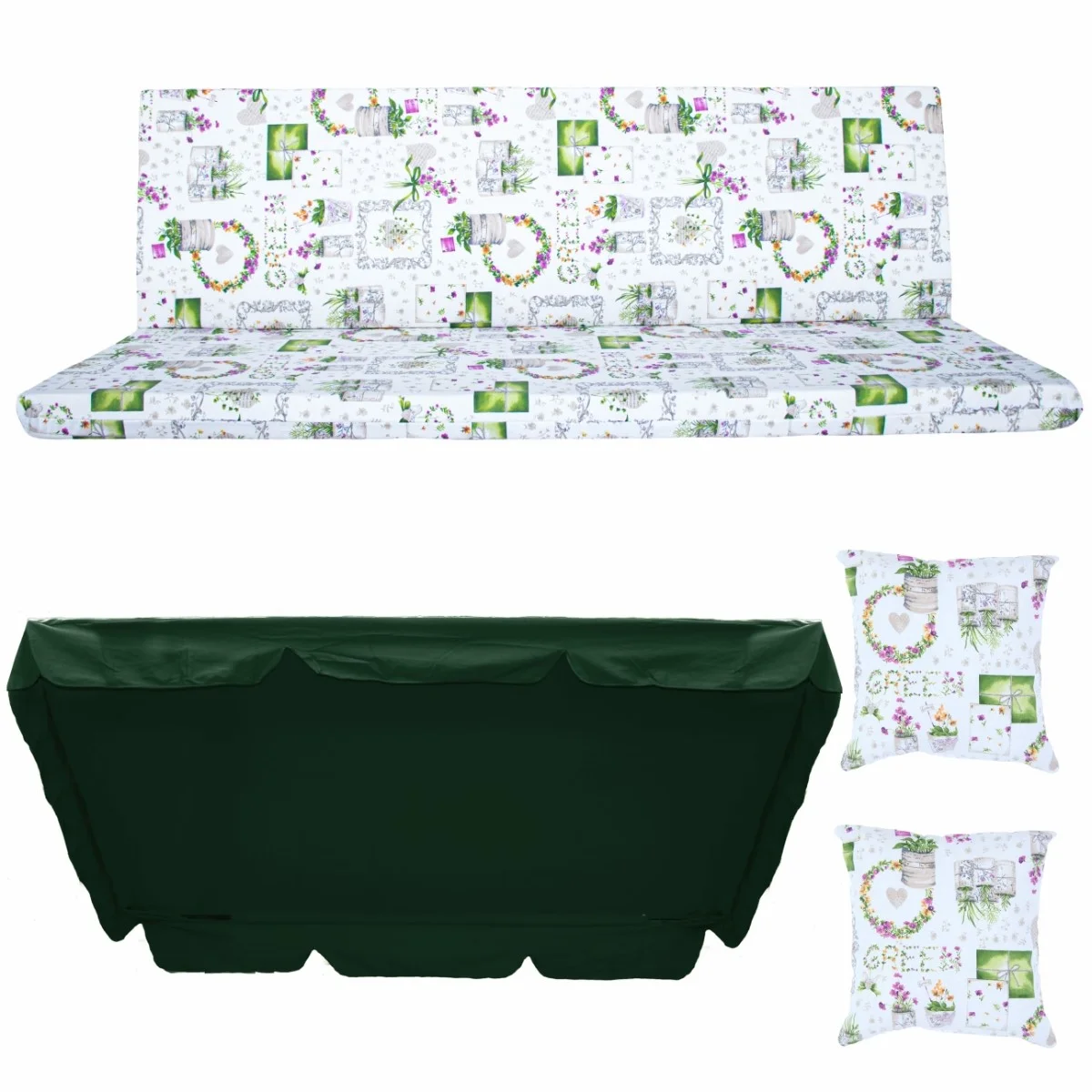 Zestaw TORINO na Huśtawkę Ogrodową Poduchy 180cm + 2 Jaśki + Daszek 120X214