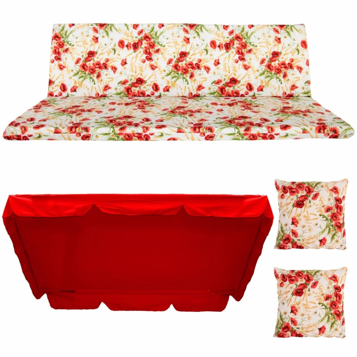 Zestaw TORINO na Huśtawkę Ogrodową Poduchy 180cm + 2 Jaśki + Daszek 120X214