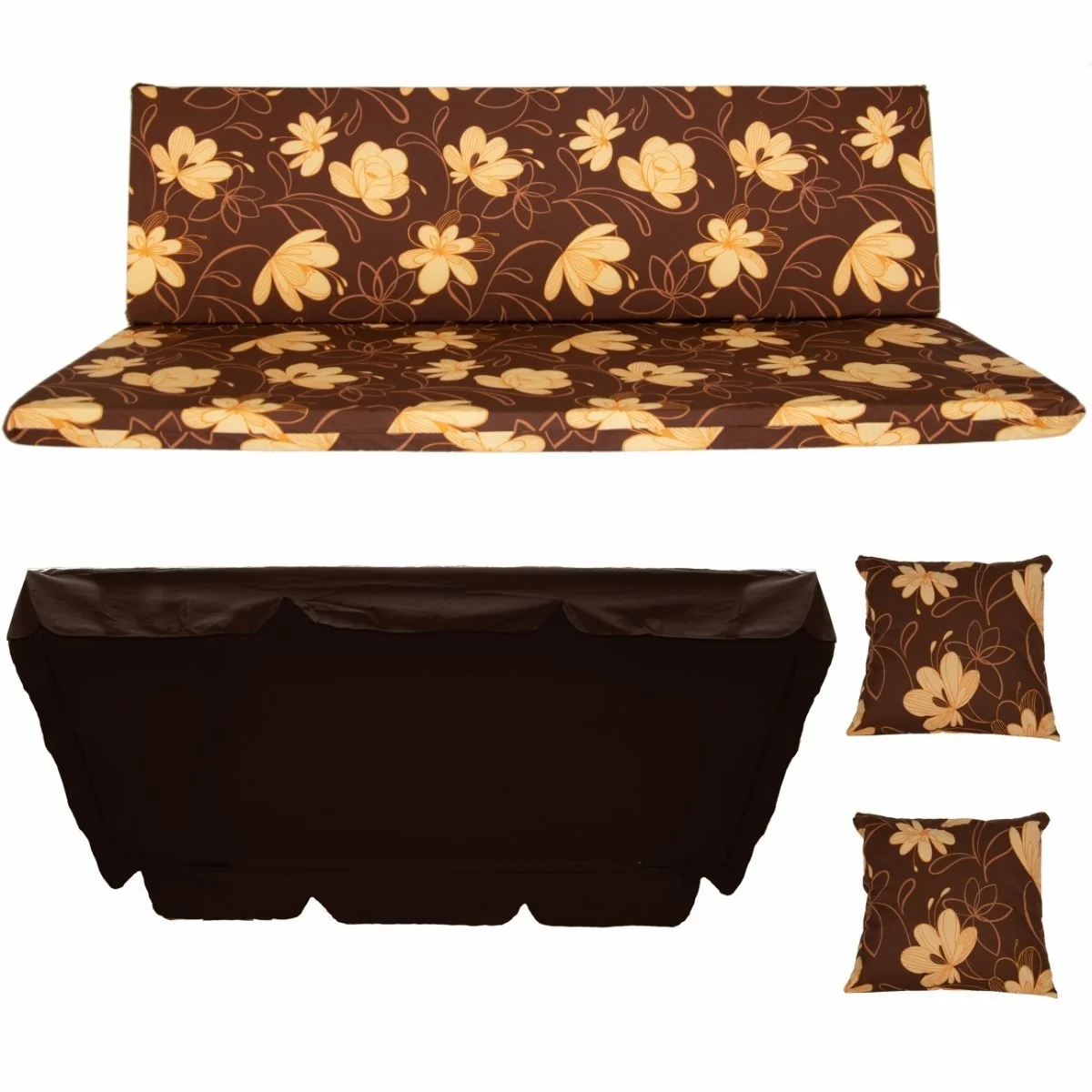 Zestaw TORINO na Huśtawkę Ogrodową Poduchy 150cm + 2 Jaśki + Daszek 120X180.