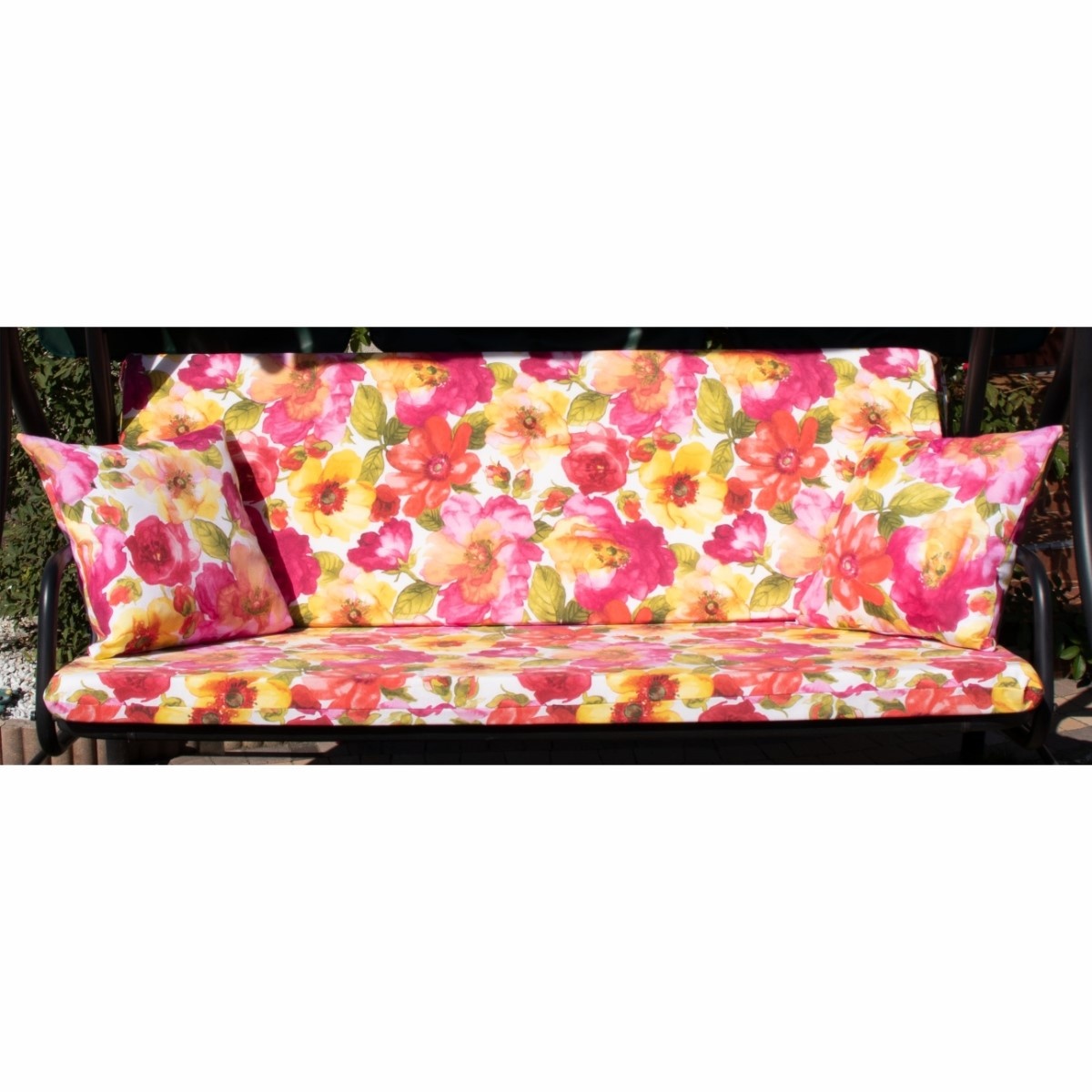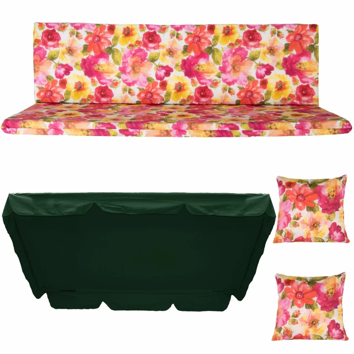 Zestaw TORINO na Huśtawkę Ogrodową Poduchy 150cm + 2 Jaśki + Daszek 120X180.