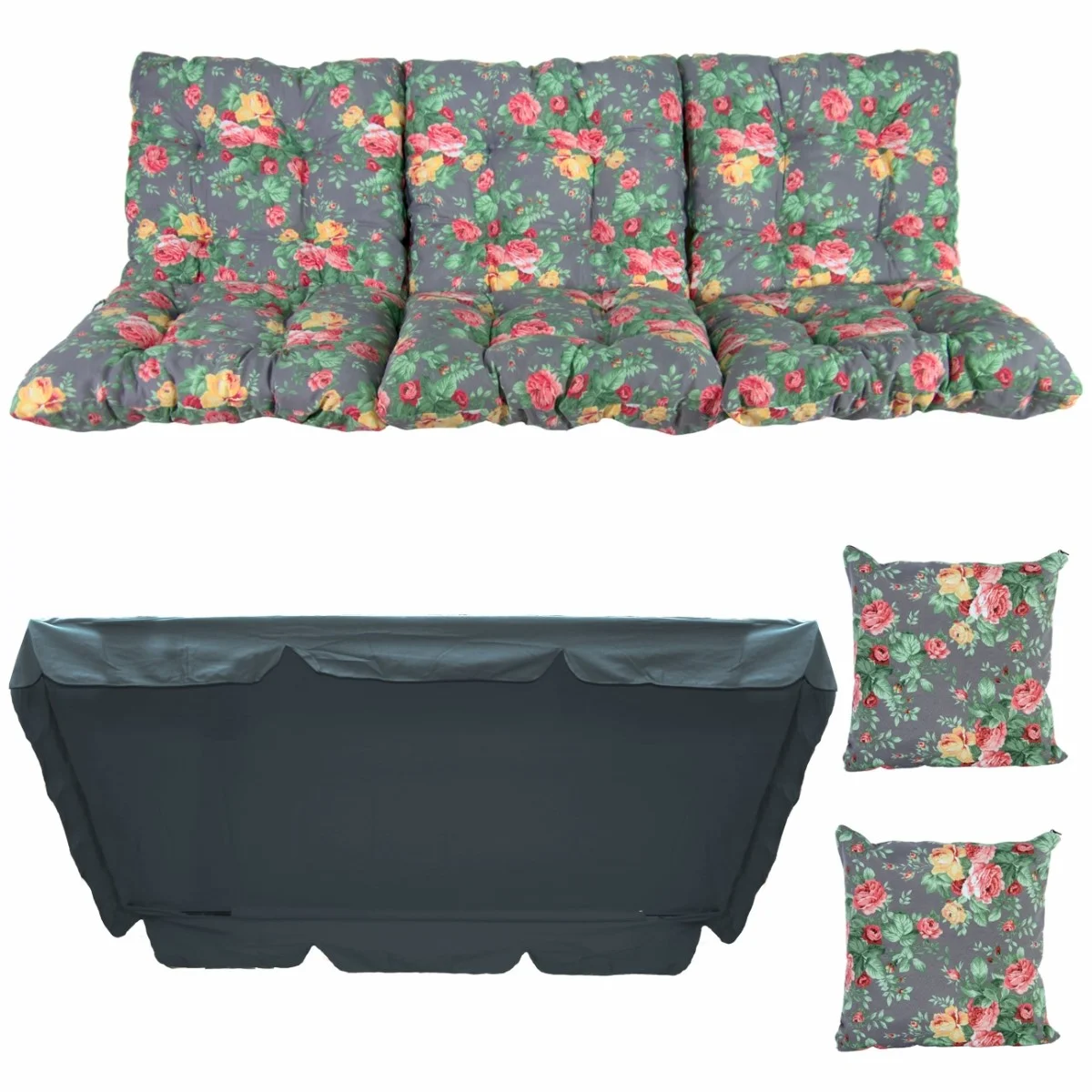 Poduchy RODOS 150cm na Huśtawkę Ogrodową + 2 Jaśki + Daszek 120x180cm.