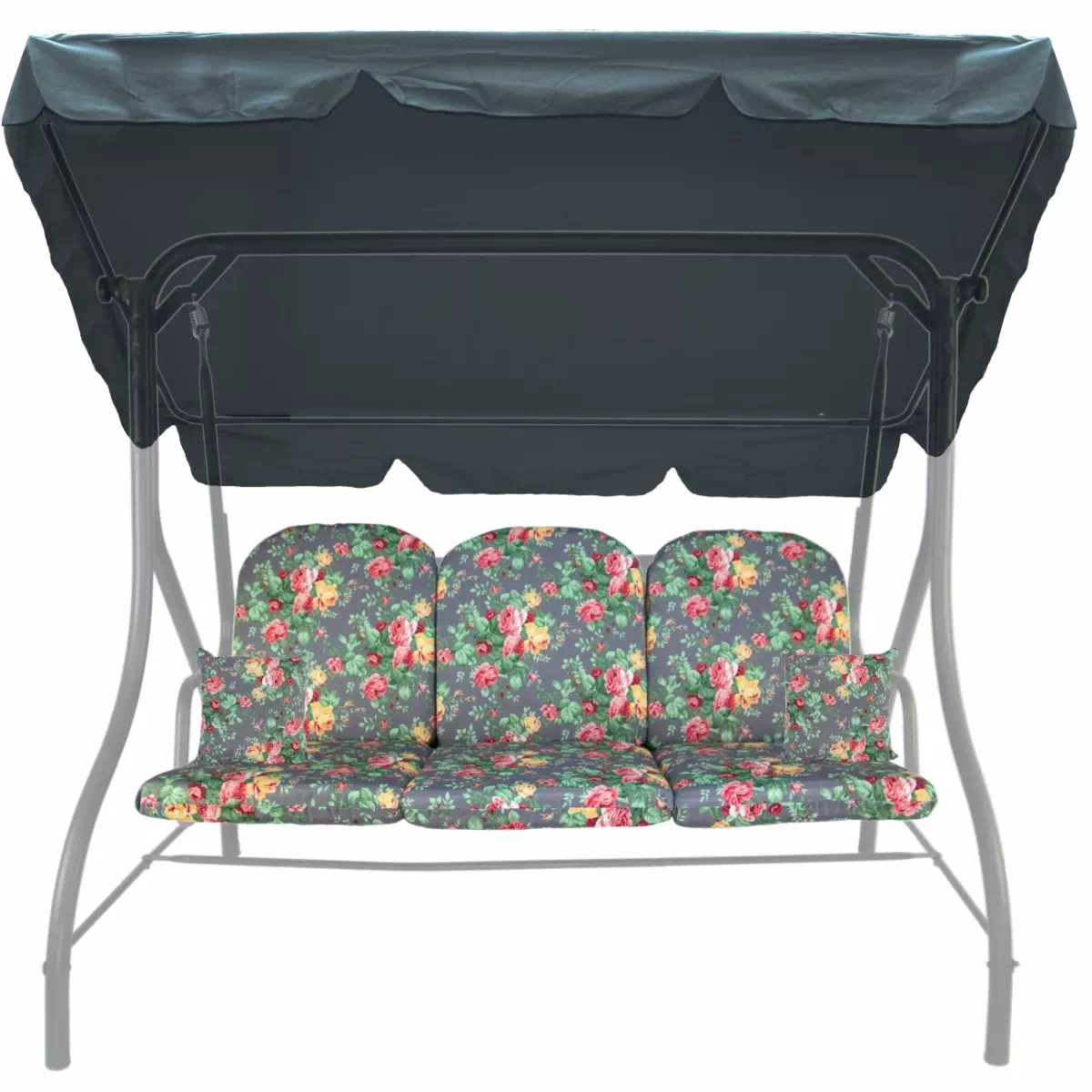 Zestaw KOMFORT na Huśtawkę Ogrodową Poduchy 150cm + 2 Jaśki + Daszek 120X180