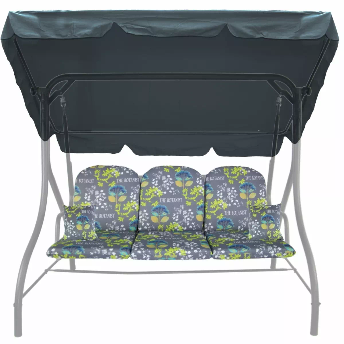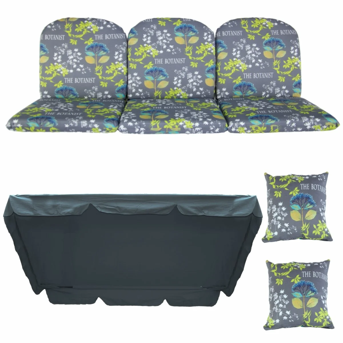 Zestaw KOMFORT na Huśtawkę Ogrodową Poduchy 150cm + 2 Jaśki + Daszek 120X180