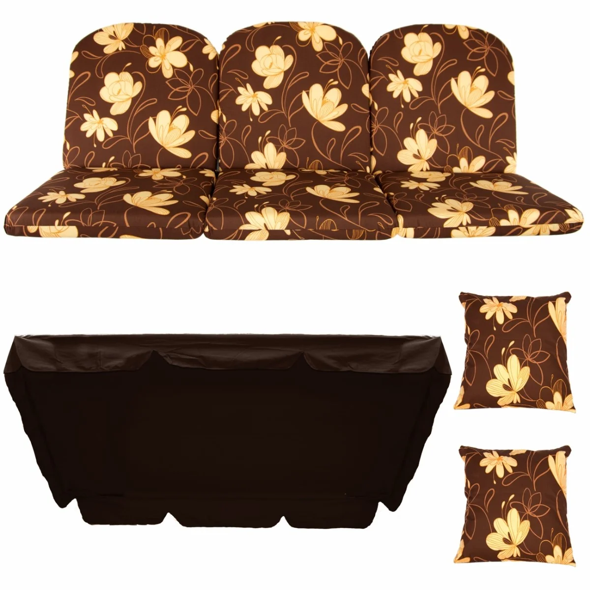 Zestaw KOMFORT na Huśtawkę Ogrodową Poduchy 180cm + 2 Jaśki + Daszek 120X214