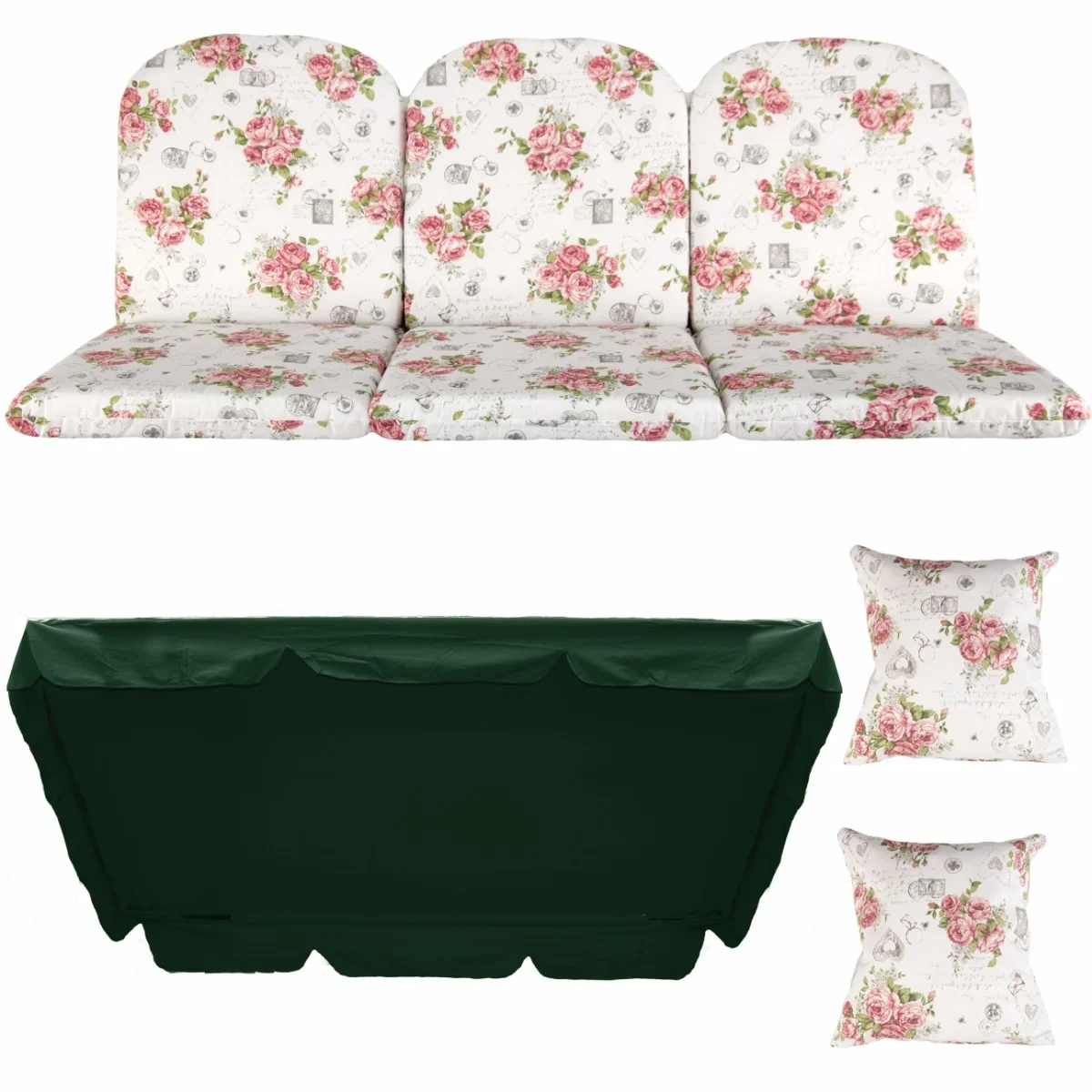Zestaw KOMFORT na Huśtawkę Ogrodową Poduchy 150cm + 2 Jaśki + Daszek 120X180