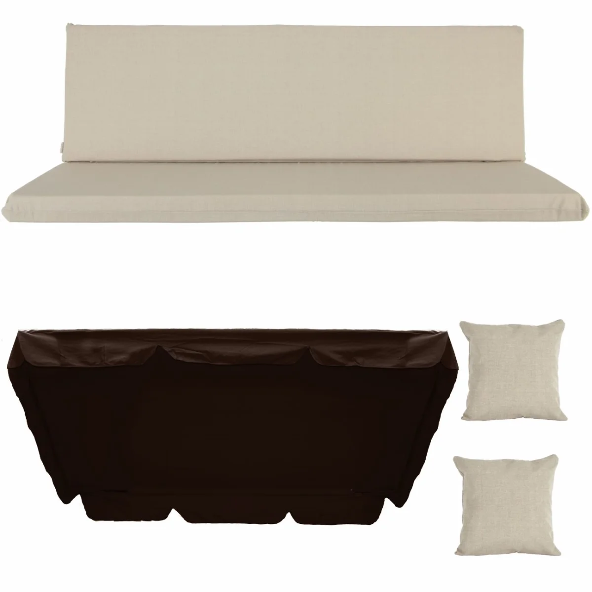 Zestaw TORINO na Huśtawkę Ogrodową Poduchy 150cm + 2 Jaśki + Daszek 120X180.