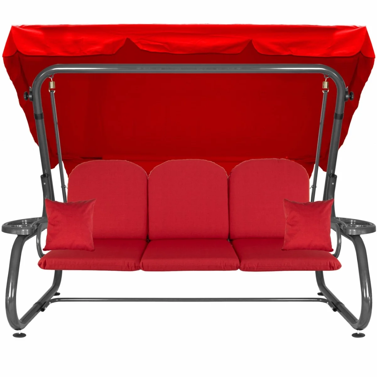 Na siedzisku i oparciu zamontowano system sprężyn z płaskownikami (ocynk), który zapewnia komfort wypoczynku i długotrwałe użytkowanie huśtawki.