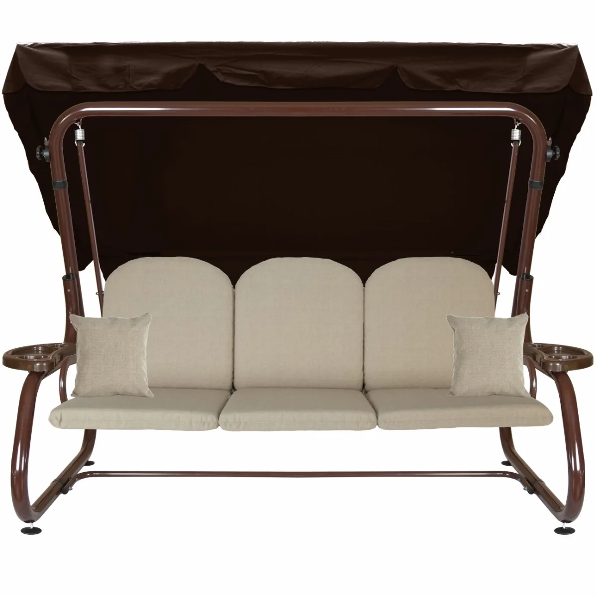 Na siedzisku i oparciu zamontowano system sprężyn z płaskownikami (ocynk), który zapewnia komfort wypoczynku i długotrwałe użytkowanie huśtawki.