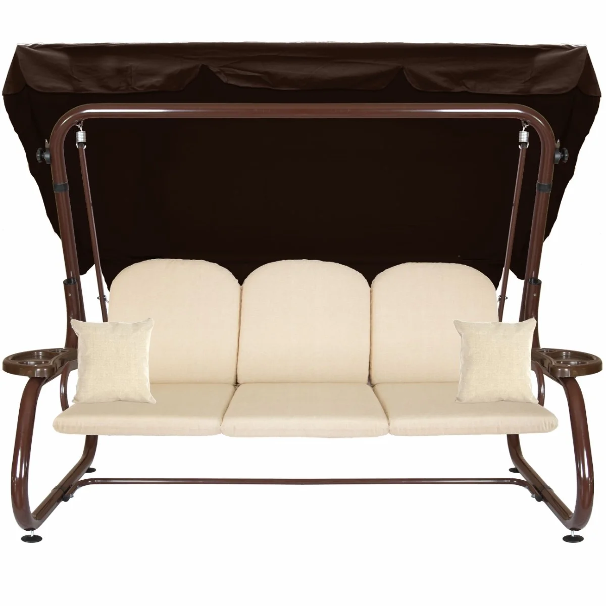 Na siedzisku i oparciu zamontowano system sprężyn z płaskownikami (ocynk), który zapewnia komfort wypoczynku i długotrwałe użytkowanie huśtawki.