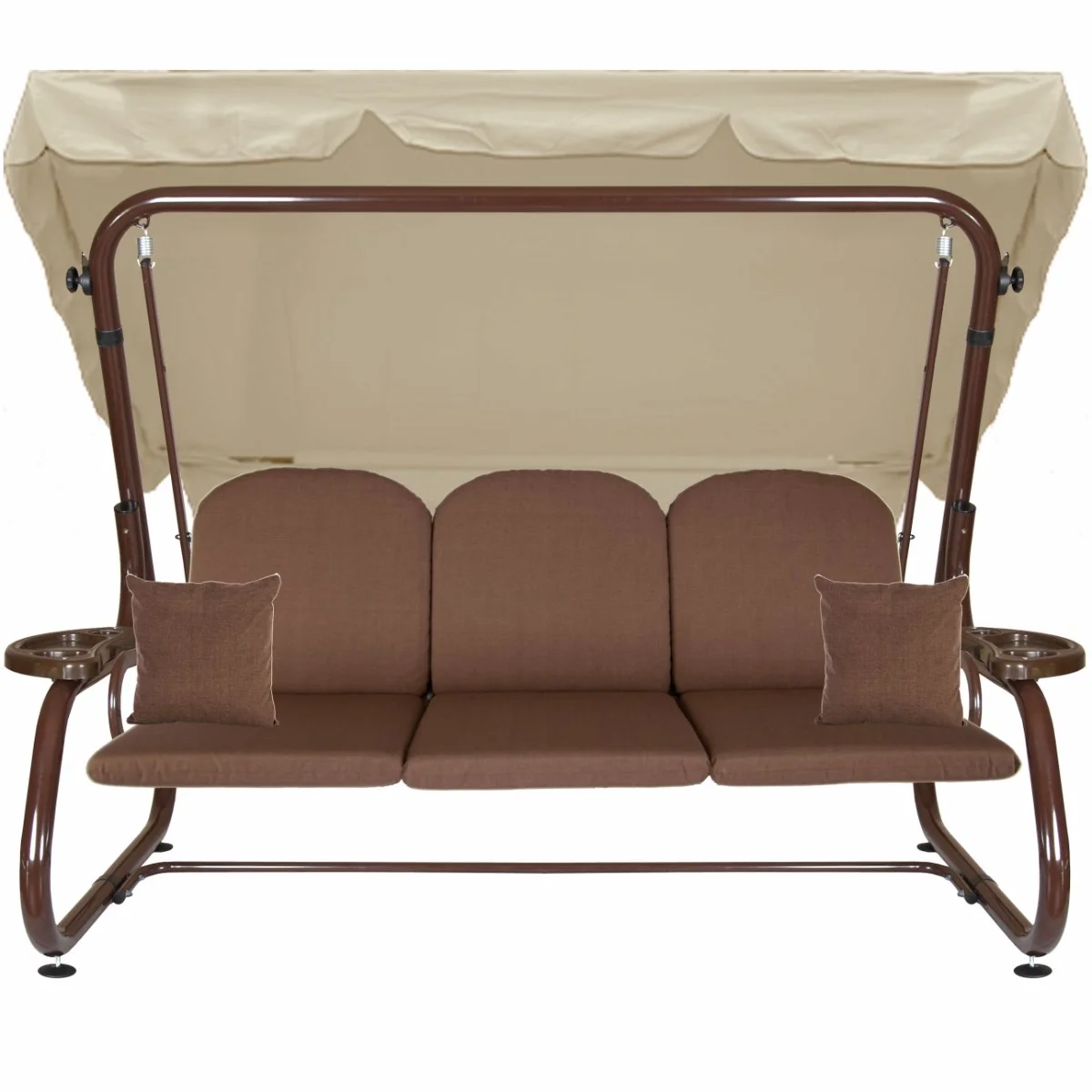 Na siedzisku i oparciu zamontowano system sprężyn z płaskownikami (ocynk), który zapewnia komfort wypoczynku i długotrwałe użytkowanie huśtawki.