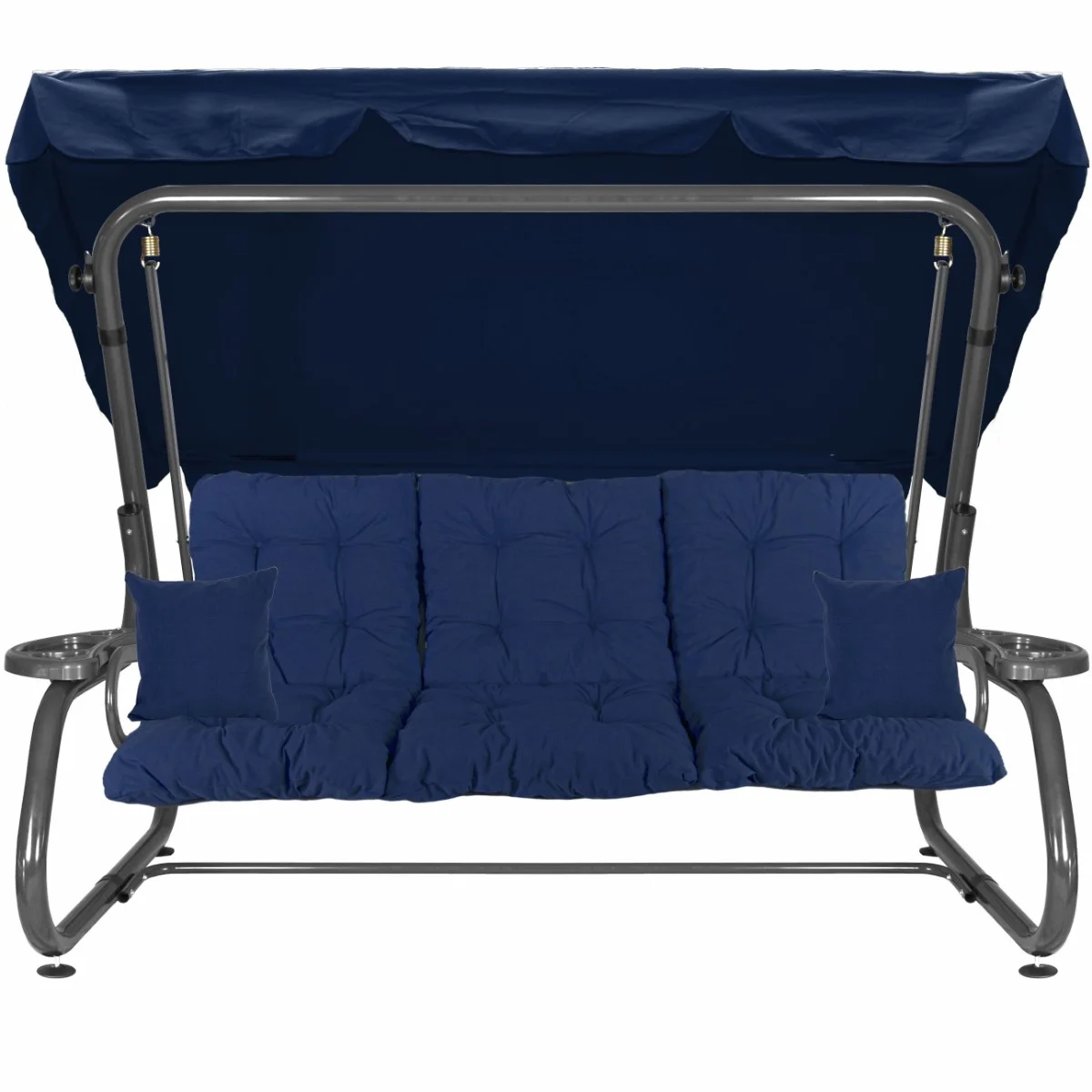 Na siedzisku i oparciu zamontowano system sprężyn z płaskownikami (ocynk), który zapewnia komfort wypoczynku i długotrwałe użytkowanie huśtawki.
