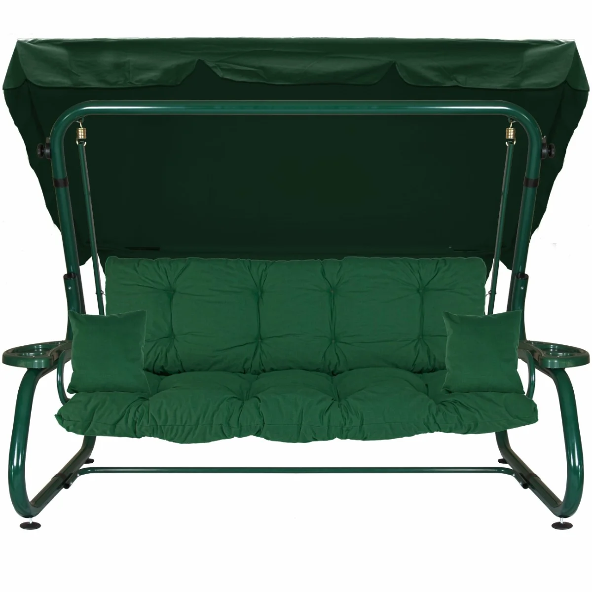 Na siedzisku i oparciu zamontowano system sprężyn z płaskownikami (ocynk), który zapewnia komfort wypoczynku i długotrwałe użytkowanie huśtawki.
