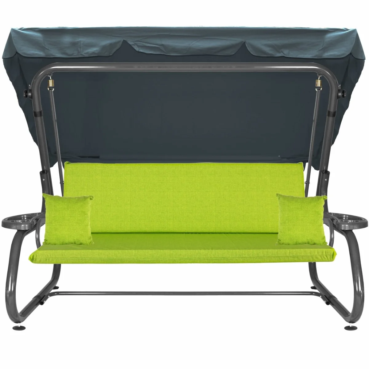 Na siedzisku i oparciu zamontowano system sprężyn z płaskownikami (ocynk), który zapewnia komfort wypoczynku i długotrwałe użytkowanie huśtawki.