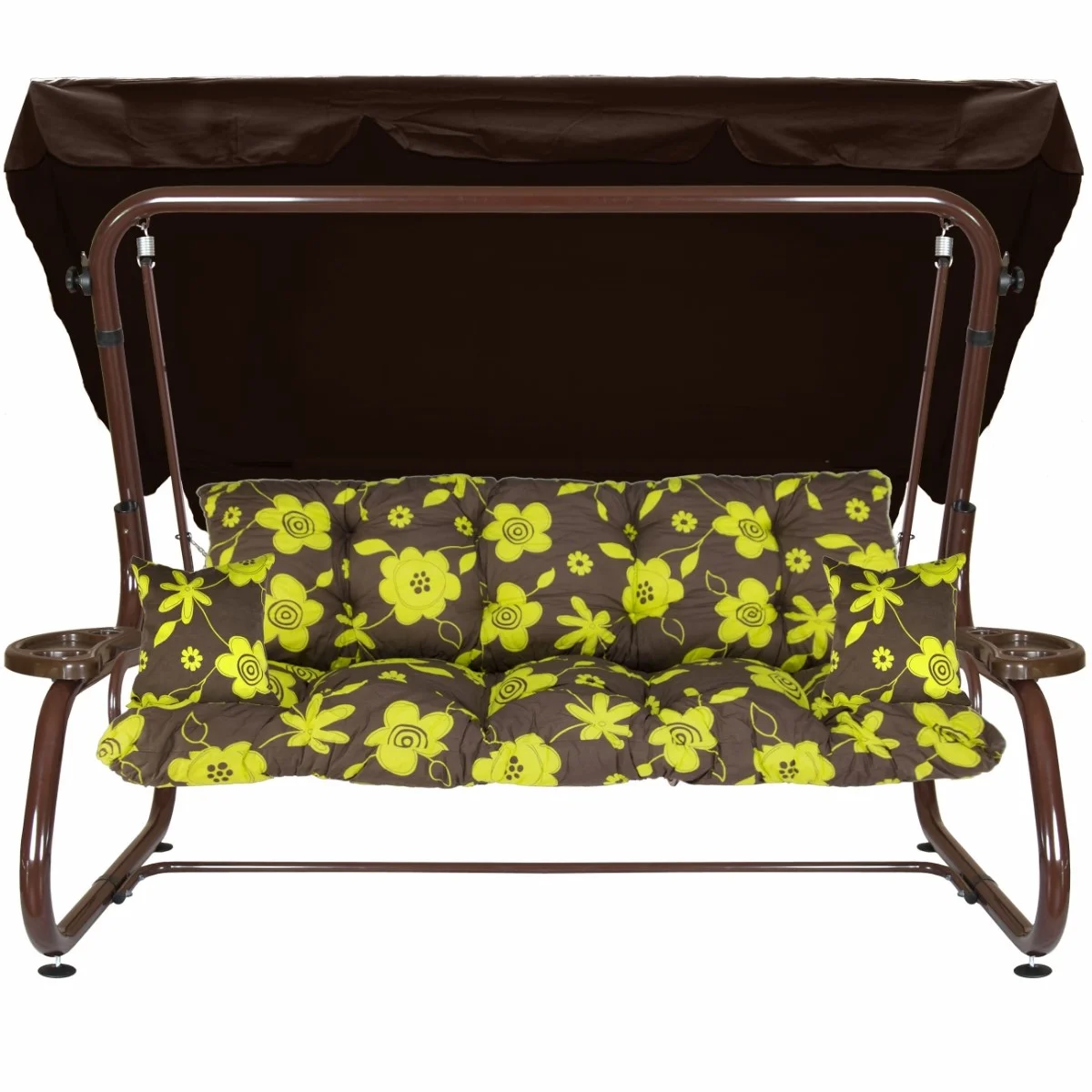 Na siedzisku i oparciu zamontowano system sprężyn z płaskownikami (ocynk), który zapewnia komfort wypoczynku i długotrwałe użytkowanie huśtawki.