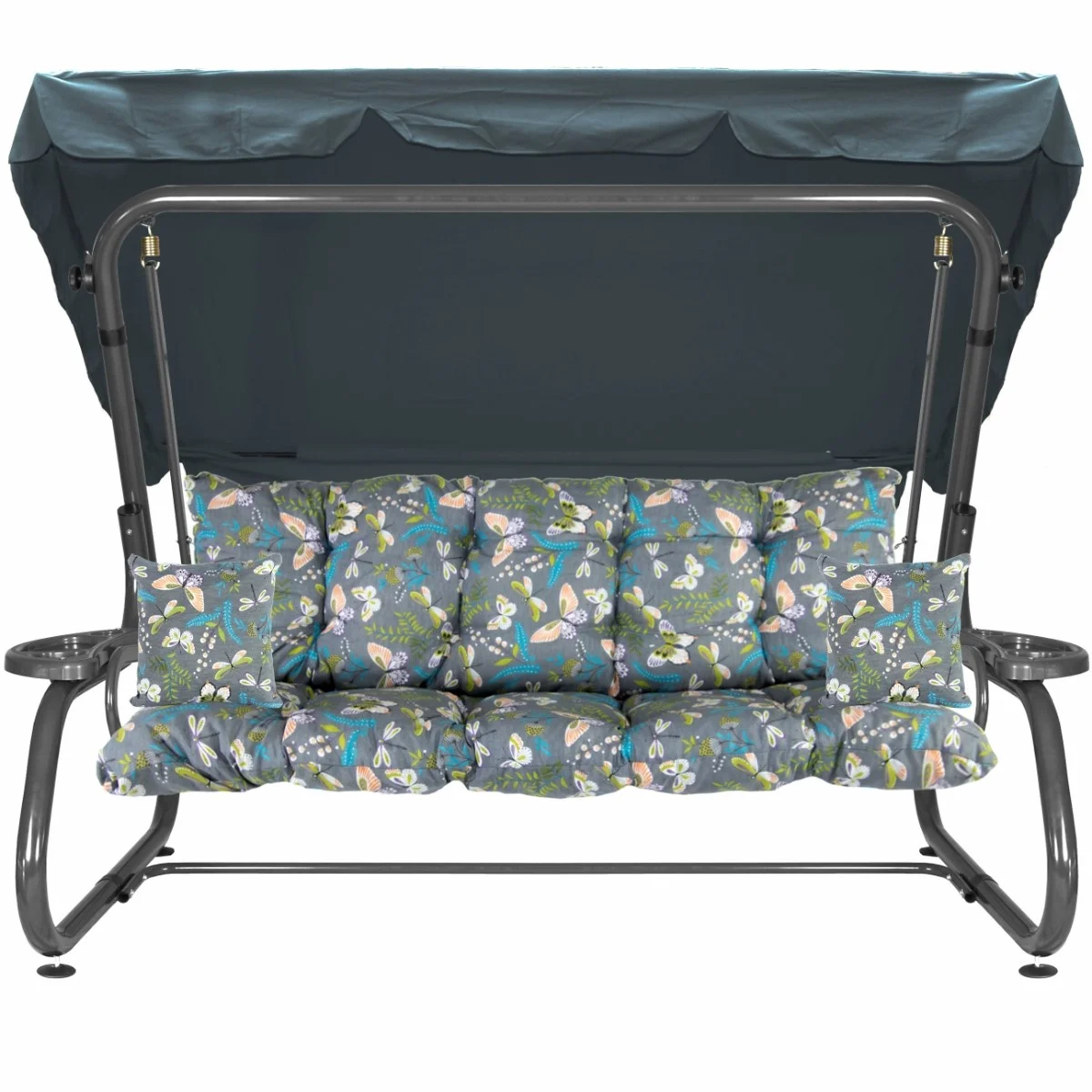 Na siedzisku i oparciu zamontowano system sprężyn z płaskownikami (ocynk), który zapewnia komfort wypoczynku i długotrwałe użytkowanie huśtawki.