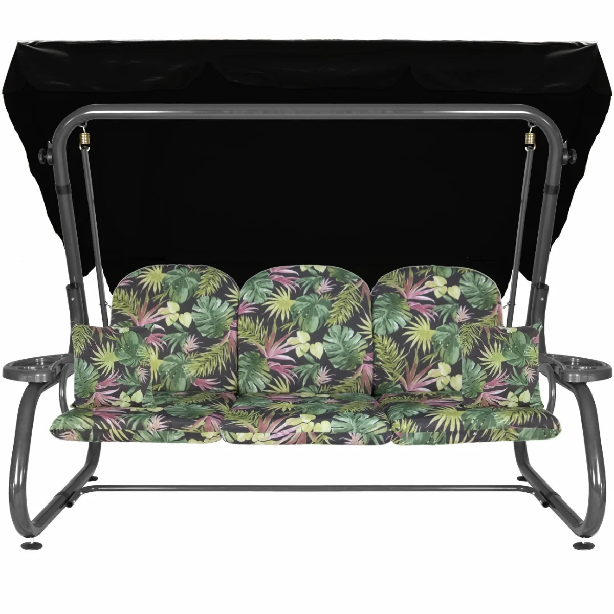 Na siedzisku i oparciu zamontowano system sprężyn z płaskownikami (ocynk), który zapewnia komfort wypoczynku i długotrwałe użytkowanie huśtawki.