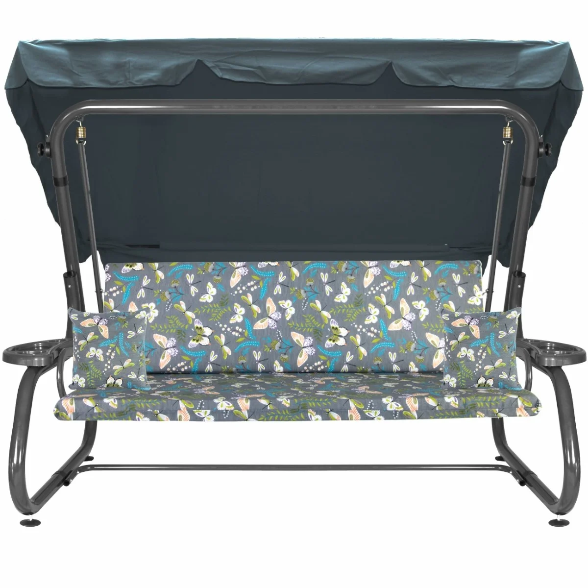 Huśtawka wyposażona w 2 półeczki, na których można postawić swoją ulubioną książkę, napój, przekąskę.