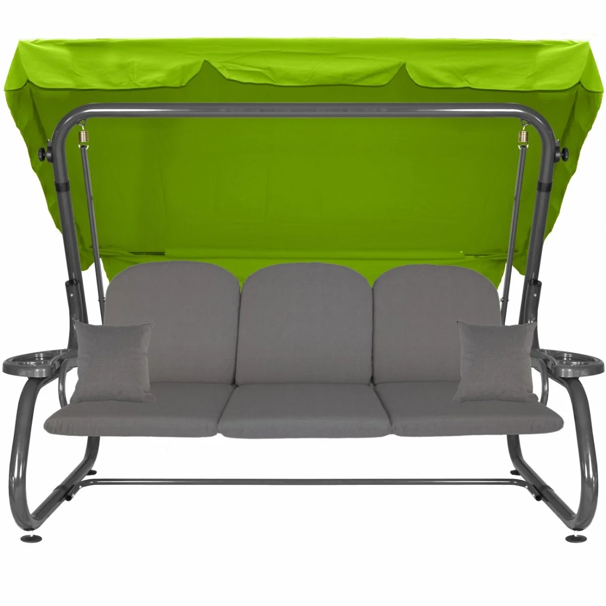 Na siedzisku i oparciu zamontowano system sprężyn z płaskownikami (ocynk), który zapewnia komfort wypoczynku i długotrwałe użytkowanie huśtawki.