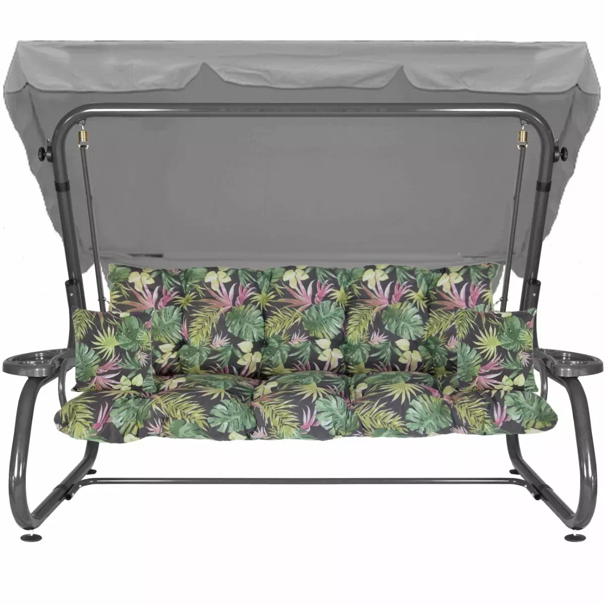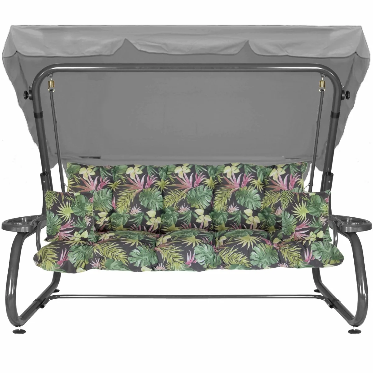 Na siedzisku i oparciu zamontowano system sprężyn z płaskownikami (ocynk), który zapewnia komfort wypoczynku i długotrwałe użytkowanie huśtawki.