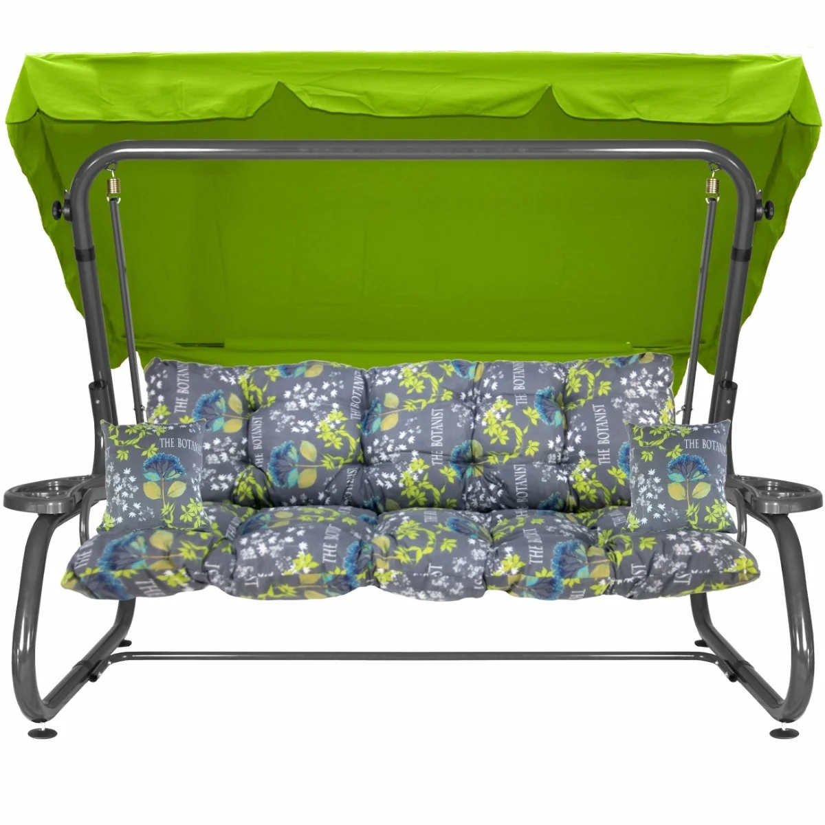 Na siedzisku i oparciu zamontowano system sprężyn z płaskownikami (ocynk), który zapewnia komfort wypoczynku i długotrwałe użytkowanie huśtawki.