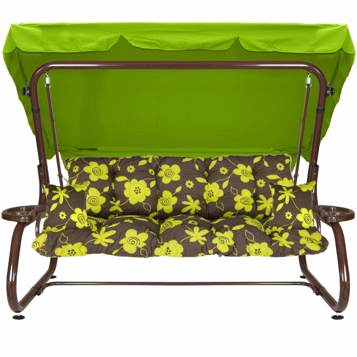 Na siedzisku i oparciu zamontowano system sprężyn z płaskownikami (ocynk), który zapewnia komfort wypoczynku i długotrwałe użytkowanie huśtawki.