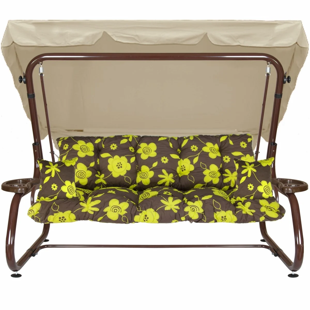 Na siedzisku i oparciu zamontowano system sprężyn z płaskownikami (ocynk), który zapewnia komfort wypoczynku i długotrwałe użytkowanie huśtawki.