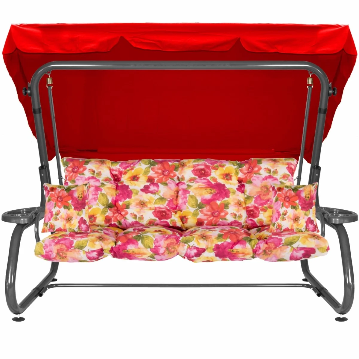 Na siedzisku i oparciu zamontowano system sprężyn z płaskownikami (ocynk), który zapewnia komfort wypoczynku i długotrwałe użytkowanie huśtawki.