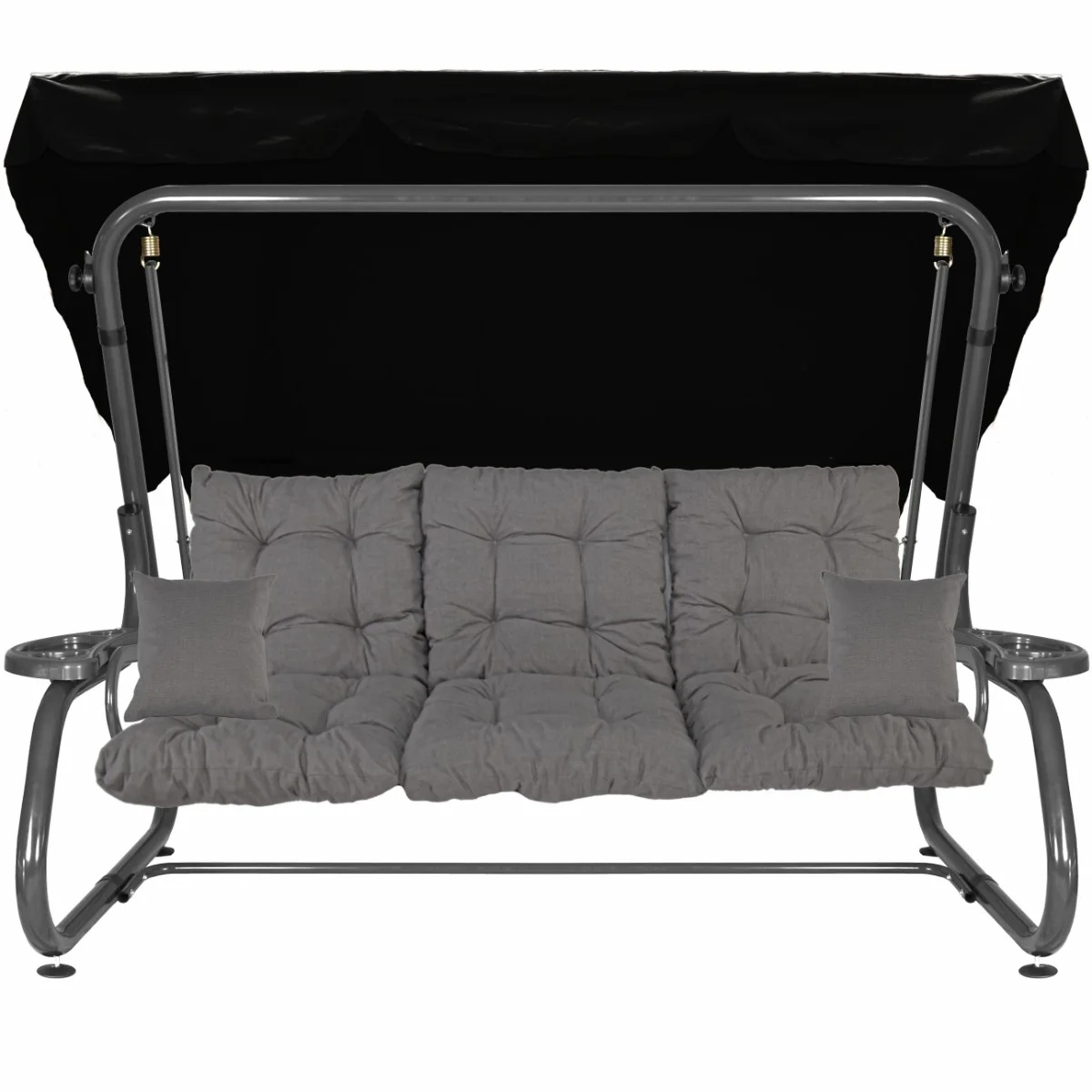 Na siedzisku i oparciu zamontowano system sprężyn z płaskownikami (ocynk), który zapewnia komfort wypoczynku i długotrwałe użytkowanie huśtawki.