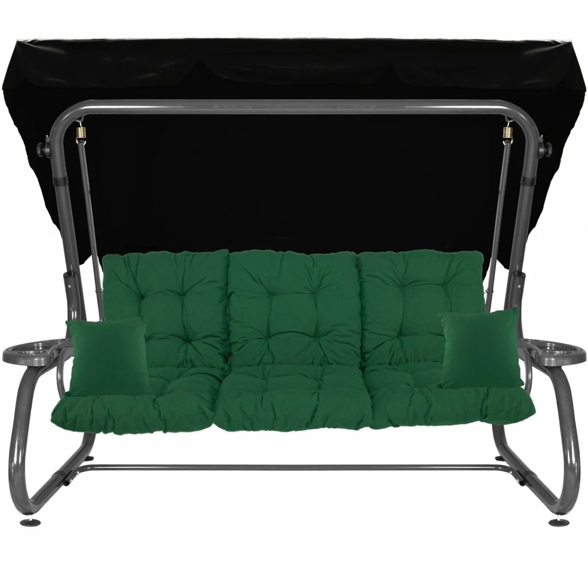 Na siedzisku i oparciu zamontowano system sprężyn z płaskownikami (ocynk), który zapewnia komfort wypoczynku i długotrwałe użytkowanie huśtawki.