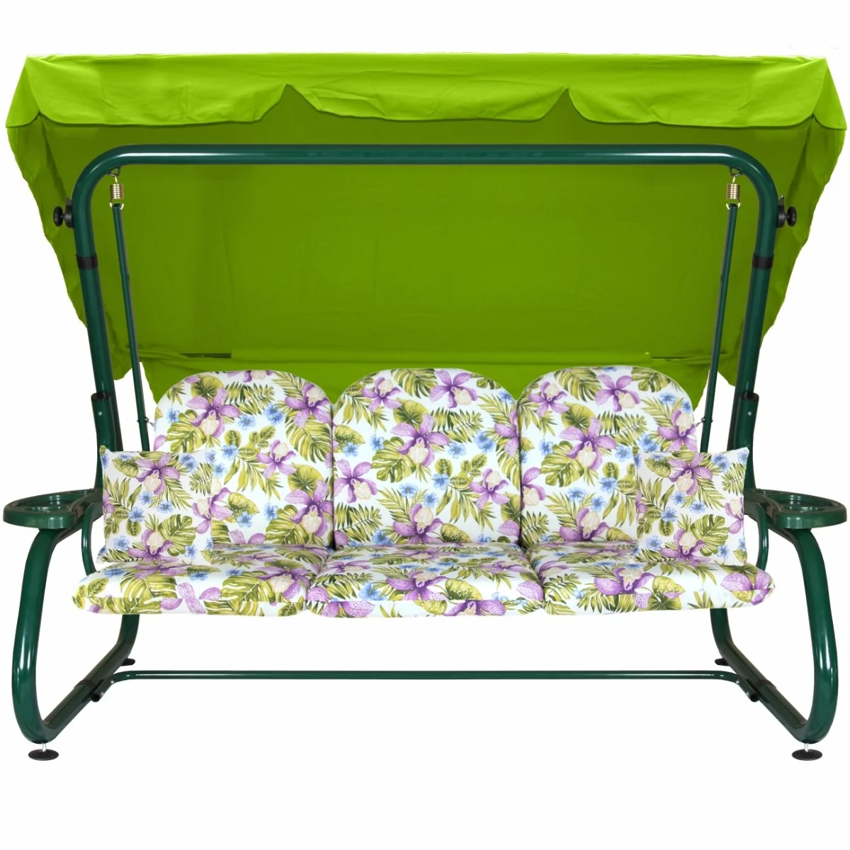 Na siedzisku i oparciu zamontowano system sprężyn z płaskownikami (ocynk), który zapewnia komfort wypoczynku i długotrwałe użytkowanie huśtawki.