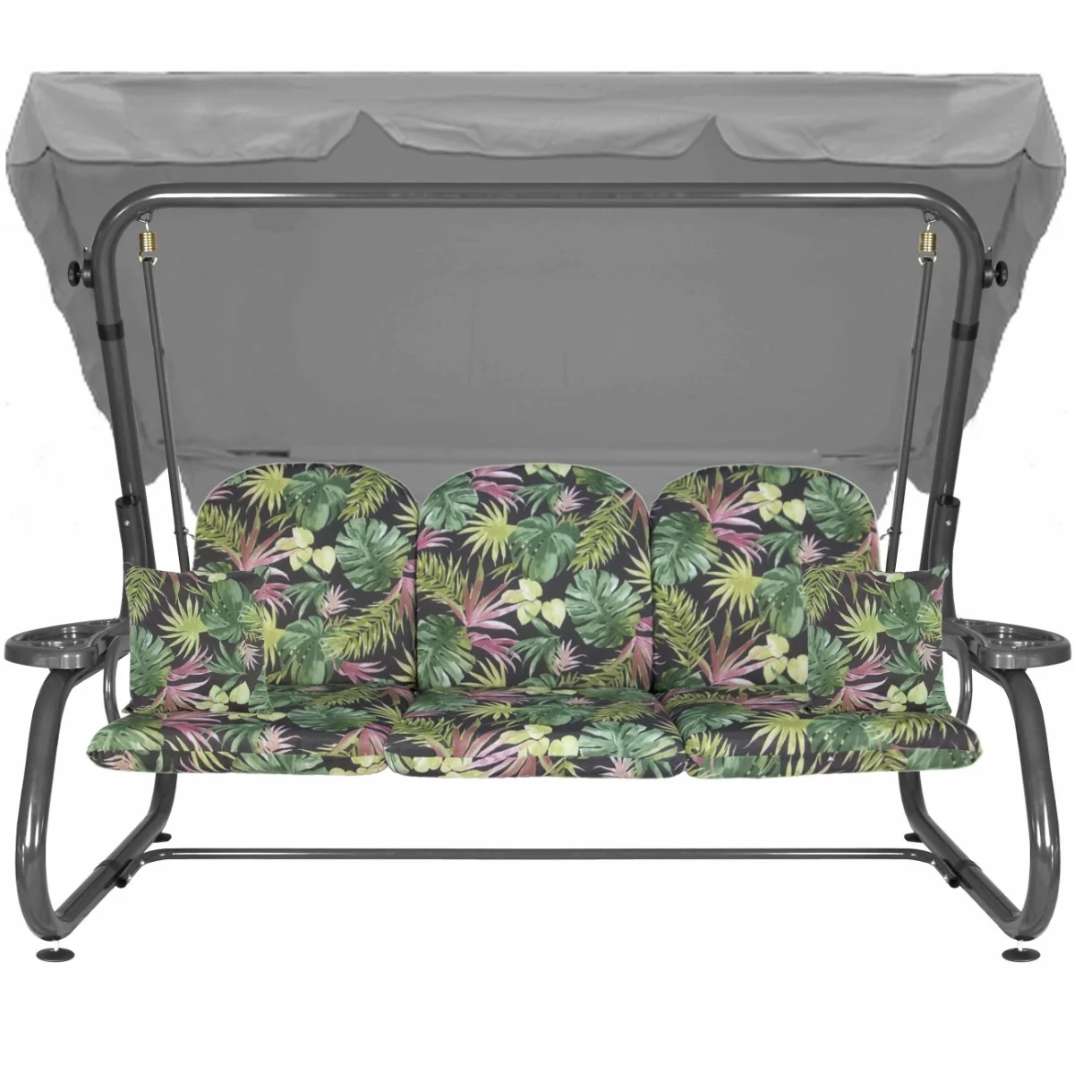 Na siedzisku i oparciu zamontowano system sprężyn z płaskownikami (ocynk), który zapewnia komfort wypoczynku i długotrwałe użytkowanie huśtawki.