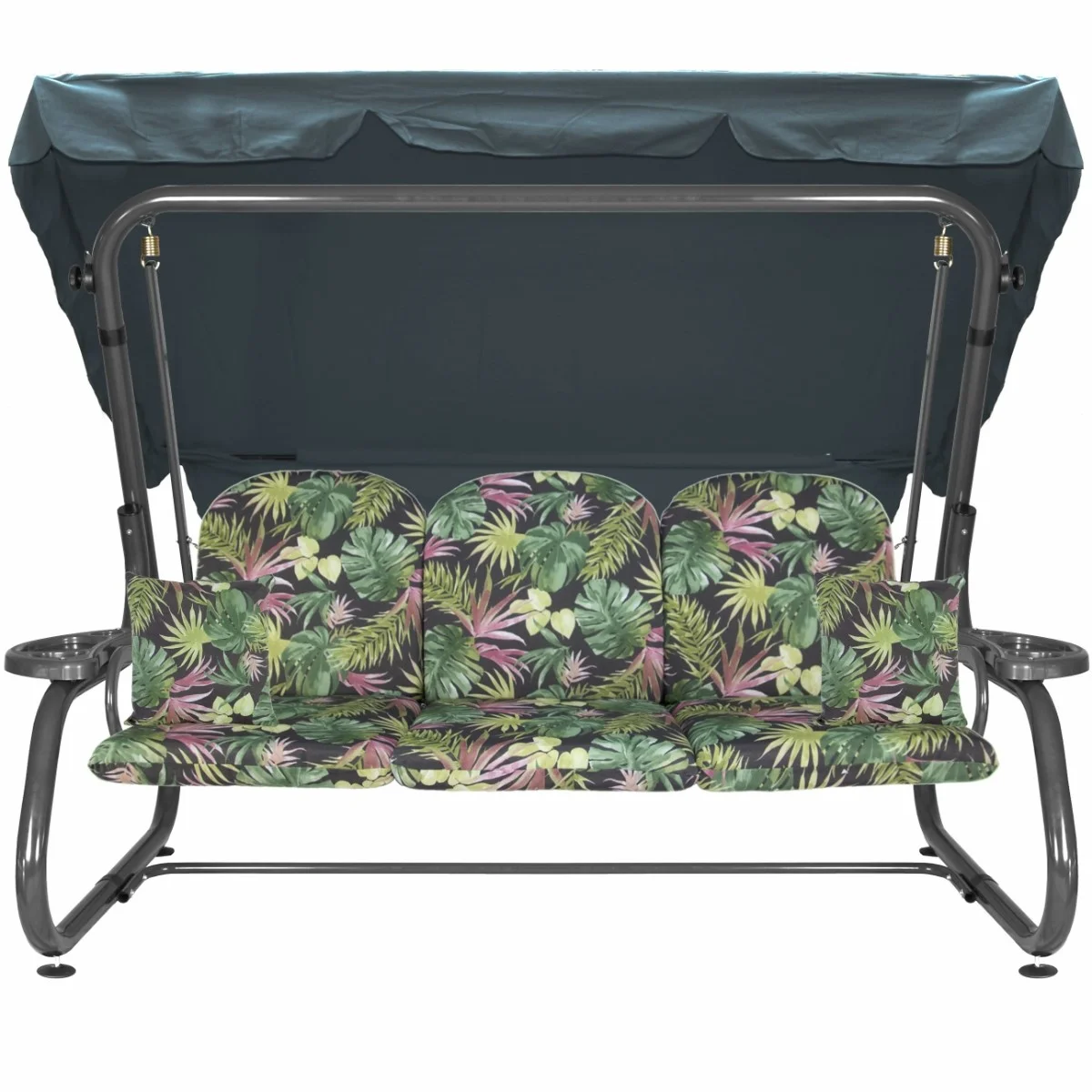 Na siedzisku i oparciu zamontowano system sprężyn z płaskownikami (ocynk), który zapewnia komfort wypoczynku i długotrwałe użytkowanie huśtawki.