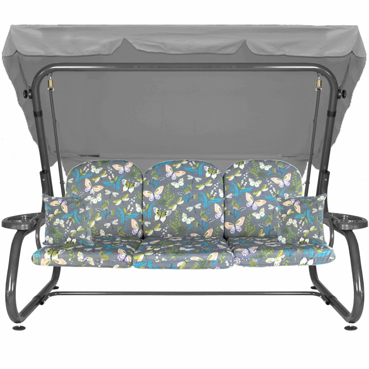 Na siedzisku i oparciu zamontowano system sprężyn z płaskownikami (ocynk), który zapewnia komfort wypoczynku i długotrwałe użytkowanie huśtawki.