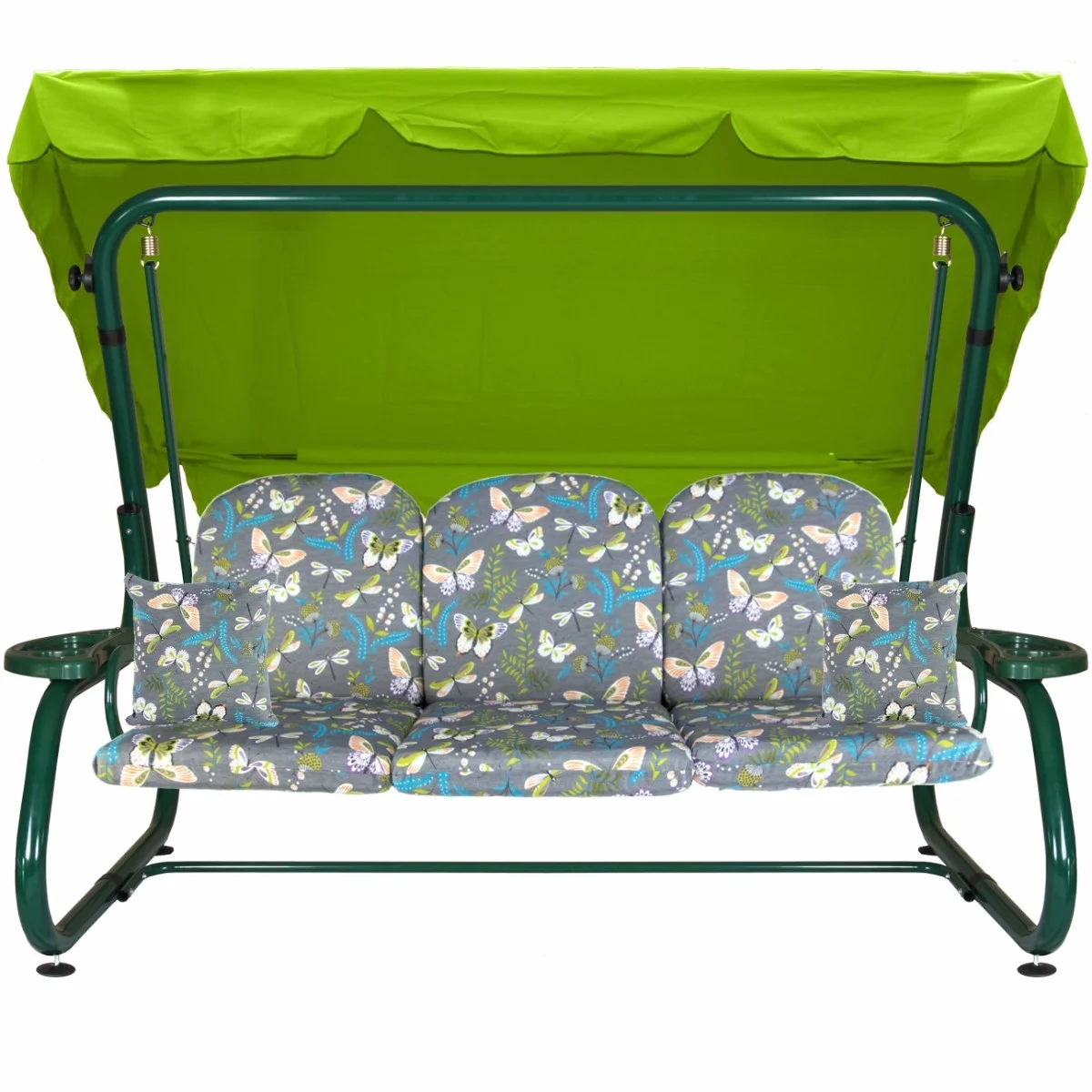 Na siedzisku i oparciu zamontowano system sprężyn z płaskownikami (ocynk), który zapewnia komfort wypoczynku i długotrwałe użytkowanie huśtawki.
