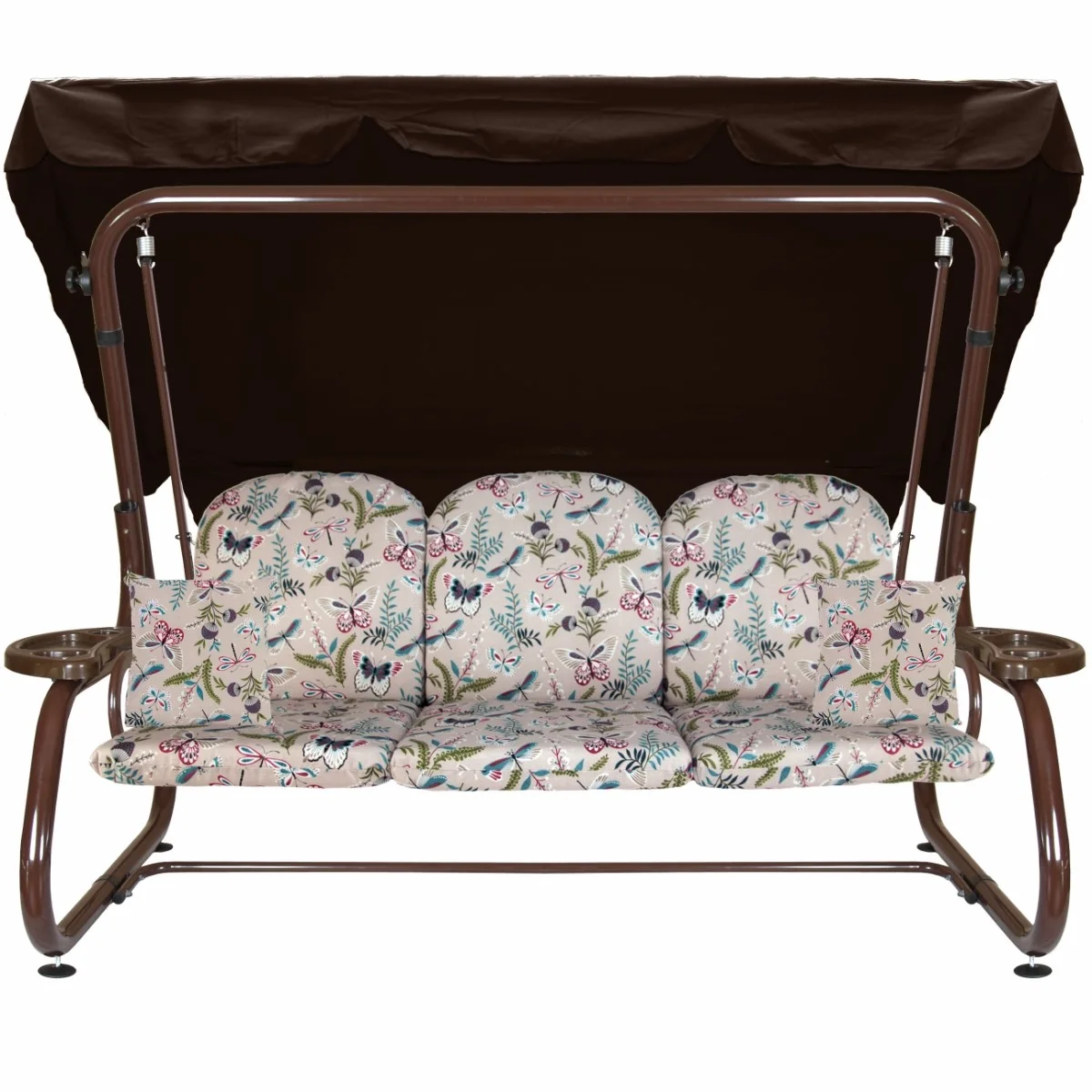 Na siedzisku i oparciu zamontowano system sprężyn z płaskownikami (ocynk), który zapewnia komfort wypoczynku i długotrwałe użytkowanie huśtawki.