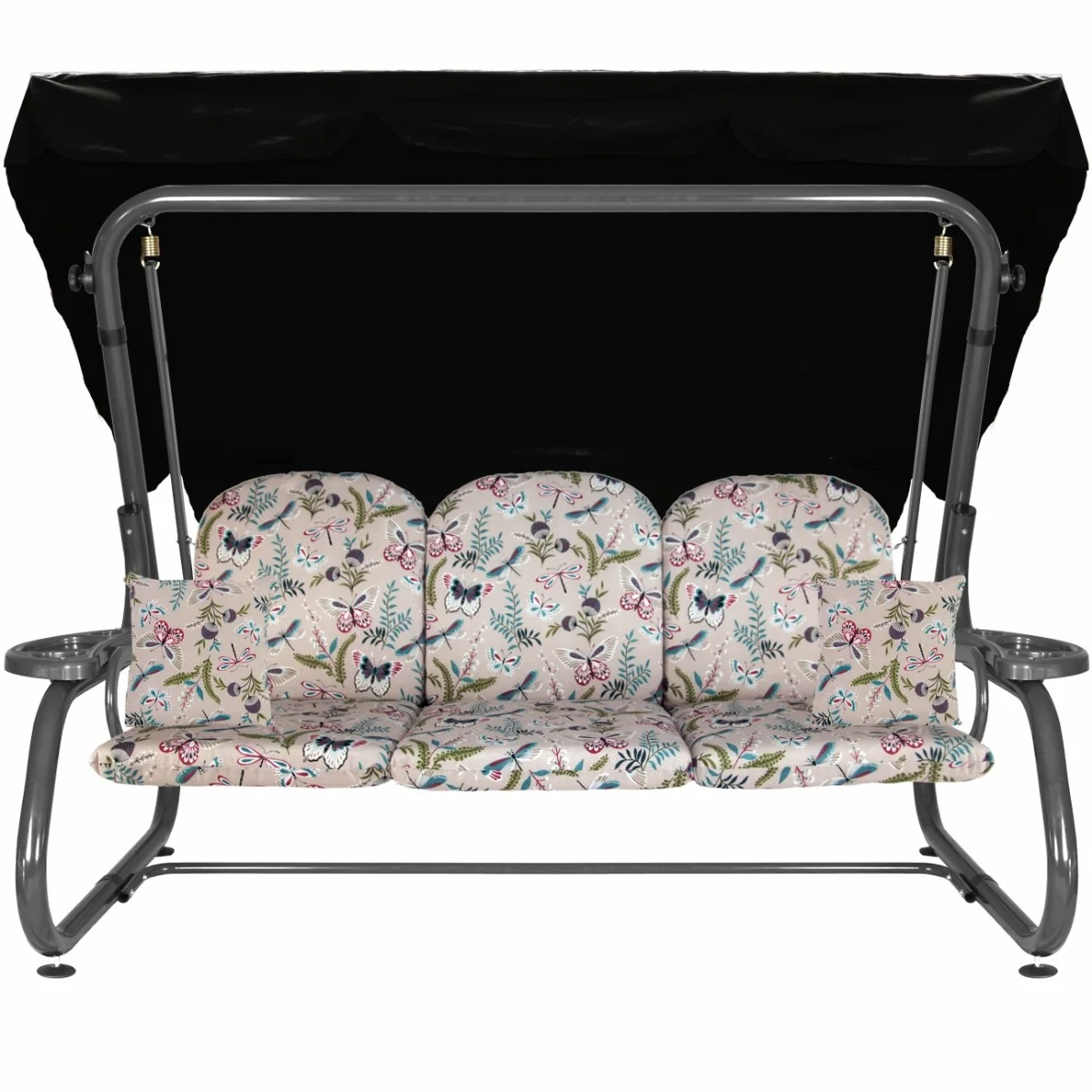 Na siedzisku i oparciu zamontowano system sprężyn z płaskownikami (ocynk), który zapewnia komfort wypoczynku i długotrwałe użytkowanie huśtawki.