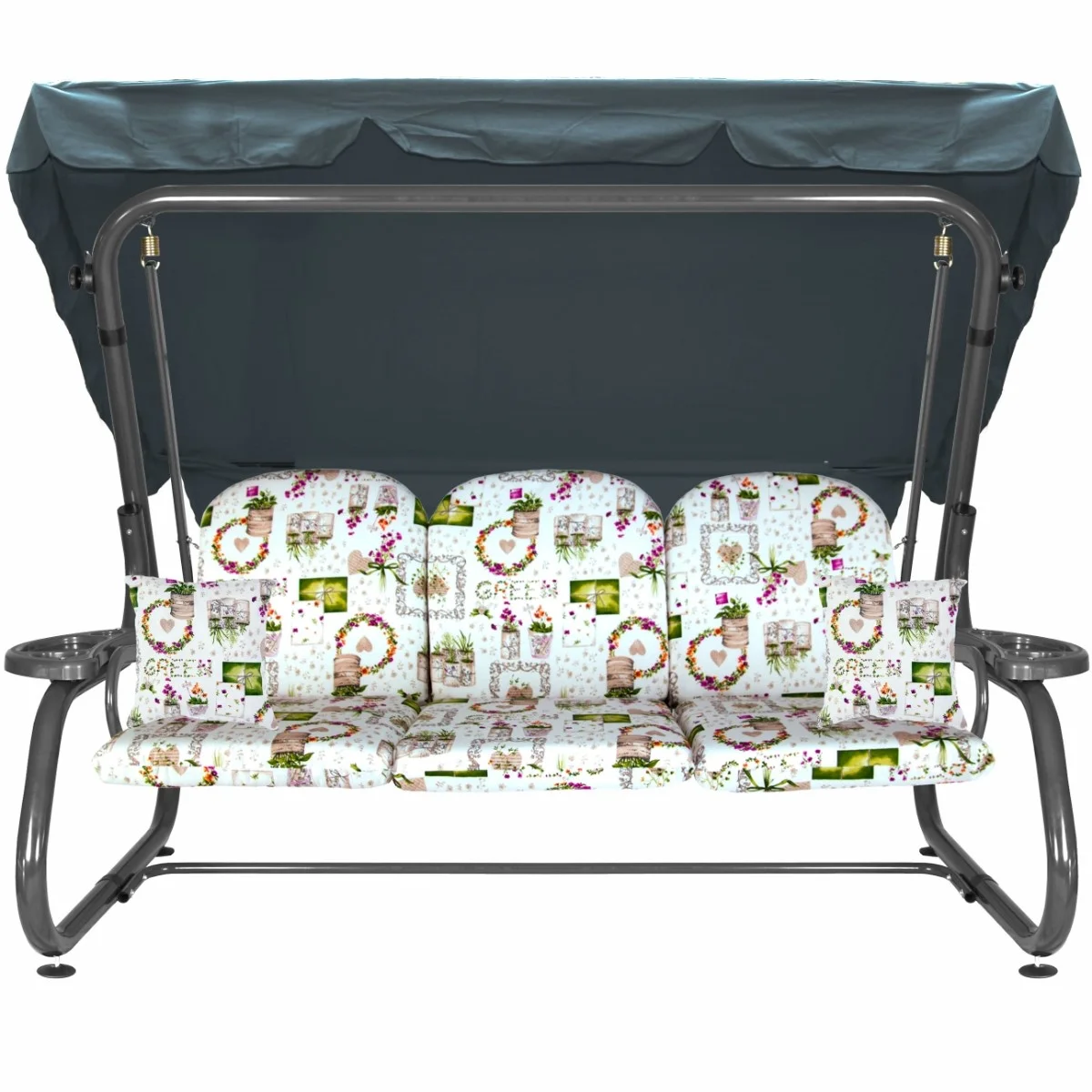 Na siedzisku i oparciu zamontowano system sprężyn z płaskownikami (ocynk), który zapewnia komfort wypoczynku i długotrwałe użytkowanie huśtawki.