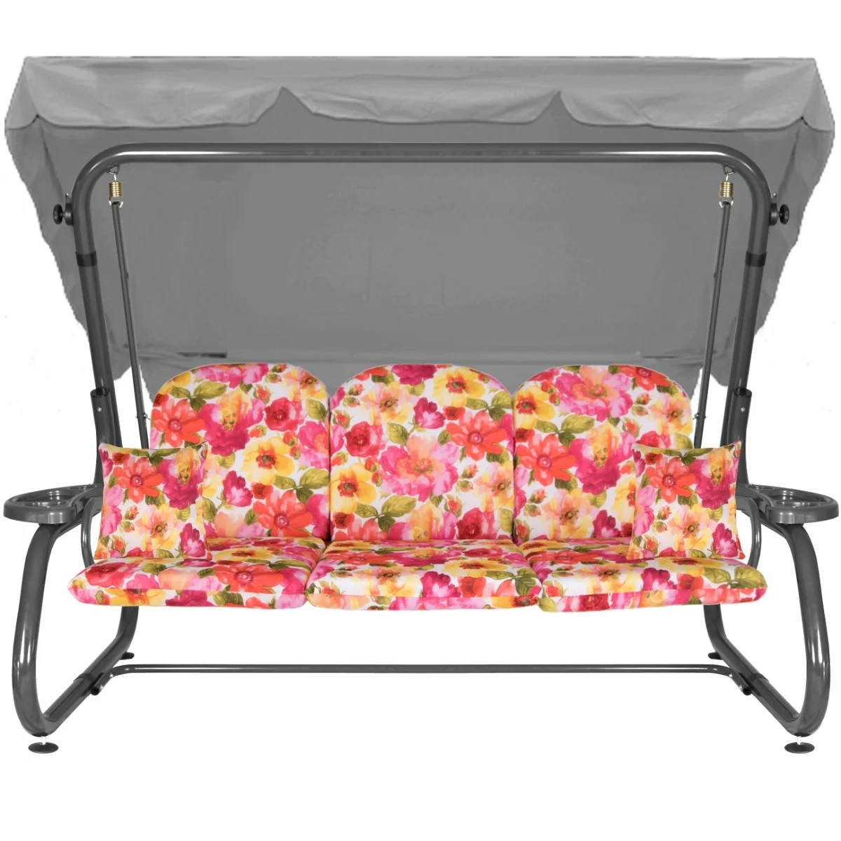 Na siedzisku i oparciu zamontowano system sprężyn z płaskownikami (ocynk), który zapewnia komfort wypoczynku i długotrwałe użytkowanie huśtawki.