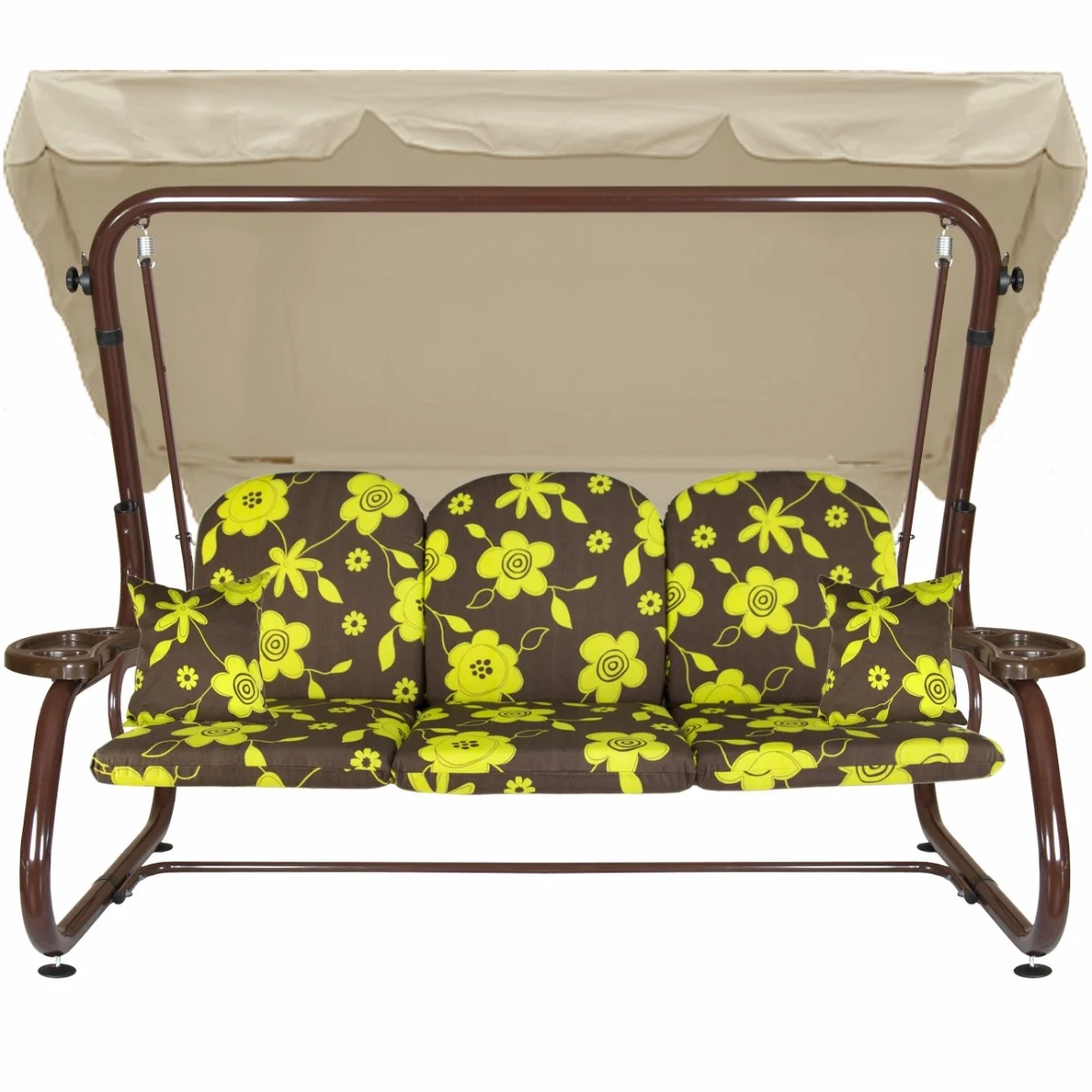 Na siedzisku i oparciu zamontowano system sprężyn z płaskownikami (ocynk), który zapewnia komfort wypoczynku i długotrwałe użytkowanie huśtawki.