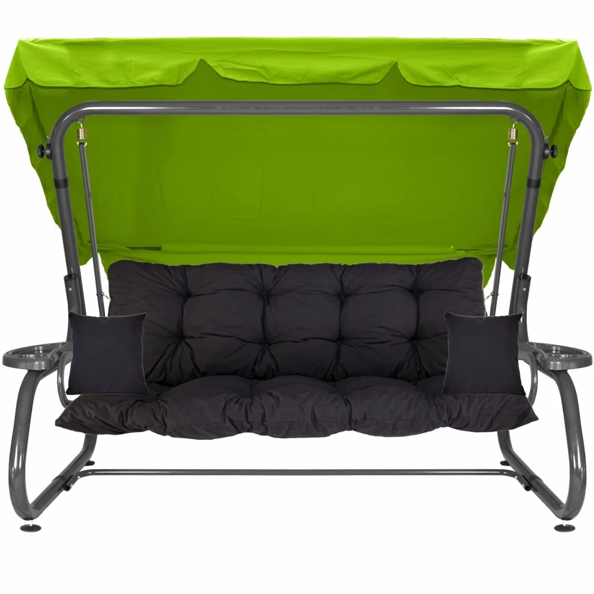 Na siedzisku i oparciu zamontowano system sprężyn z płaskownikami (ocynk), który zapewnia komfort wypoczynku i długotrwałe użytkowanie huśtawki.