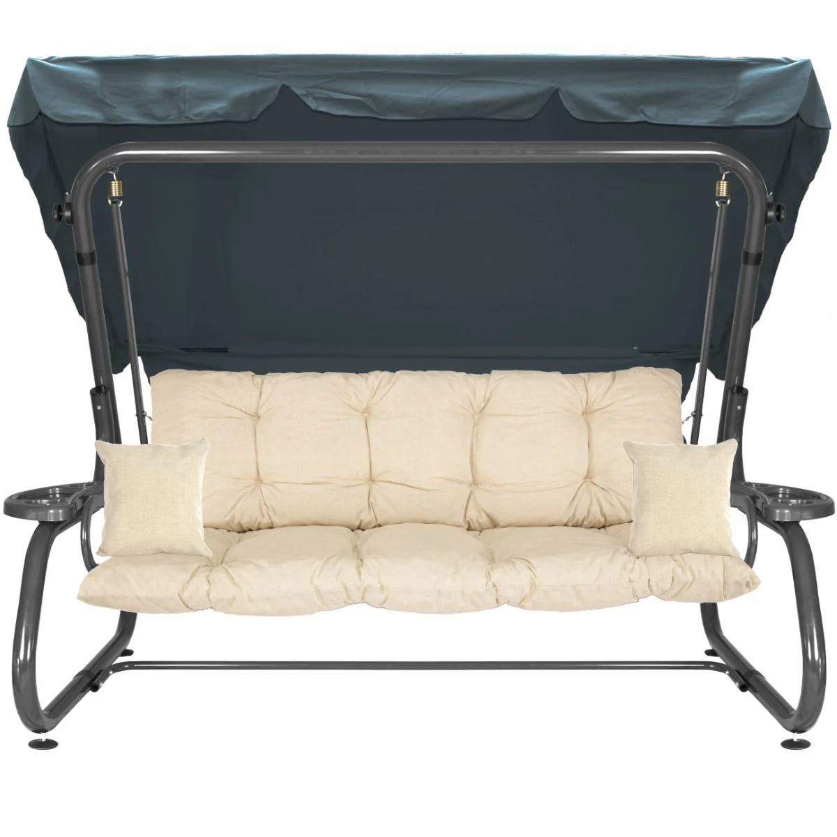 Na siedzisku i oparciu zamontowano system sprężyn z płaskownikami (ocynk), który zapewnia komfort wypoczynku i długotrwałe użytkowanie huśtawki.