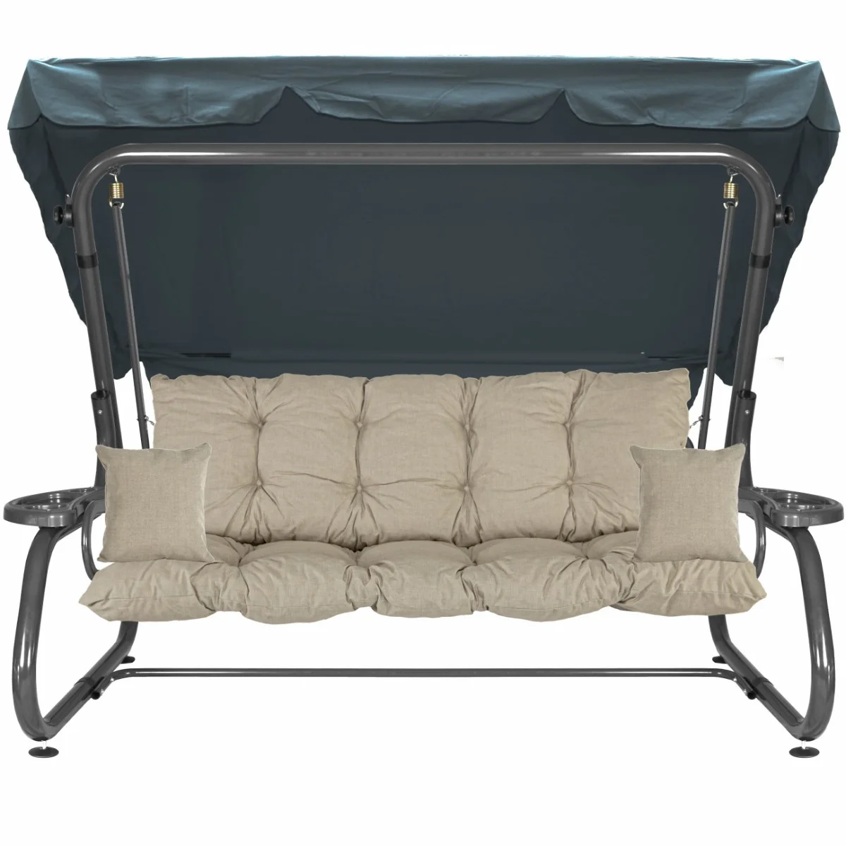 Na siedzisku i oparciu zamontowano system sprężyn z płaskownikami (ocynk), który zapewnia komfort wypoczynku i długotrwałe użytkowanie huśtawki.