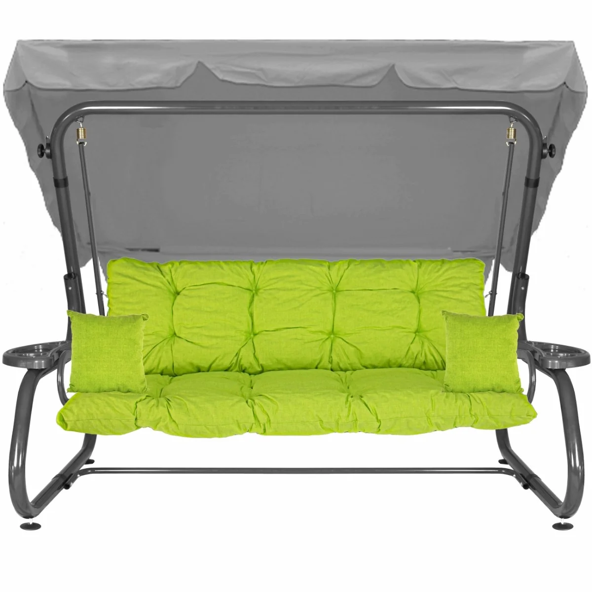 Na siedzisku i oparciu zamontowano system sprężyn z płaskownikami (ocynk), który zapewnia komfort wypoczynku i długotrwałe użytkowanie huśtawki.