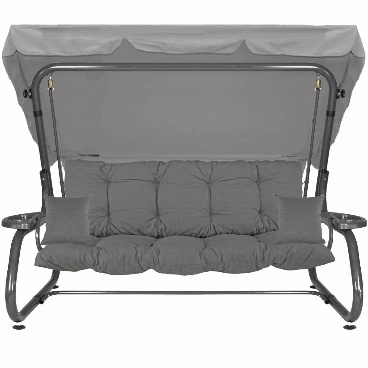 Na siedzisku i oparciu zamontowano system sprężyn z płaskownikami (ocynk), który zapewnia komfort wypoczynku i długotrwałe użytkowanie huśtawki.