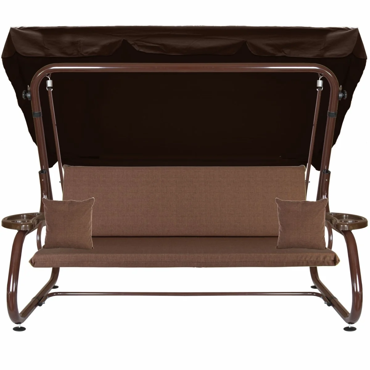 Na siedzisku i oparciu zamontowano system sprężyn z płaskownikami (ocynk), który zapewnia komfort wypoczynku i długotrwałe użytkowanie huśtawki.