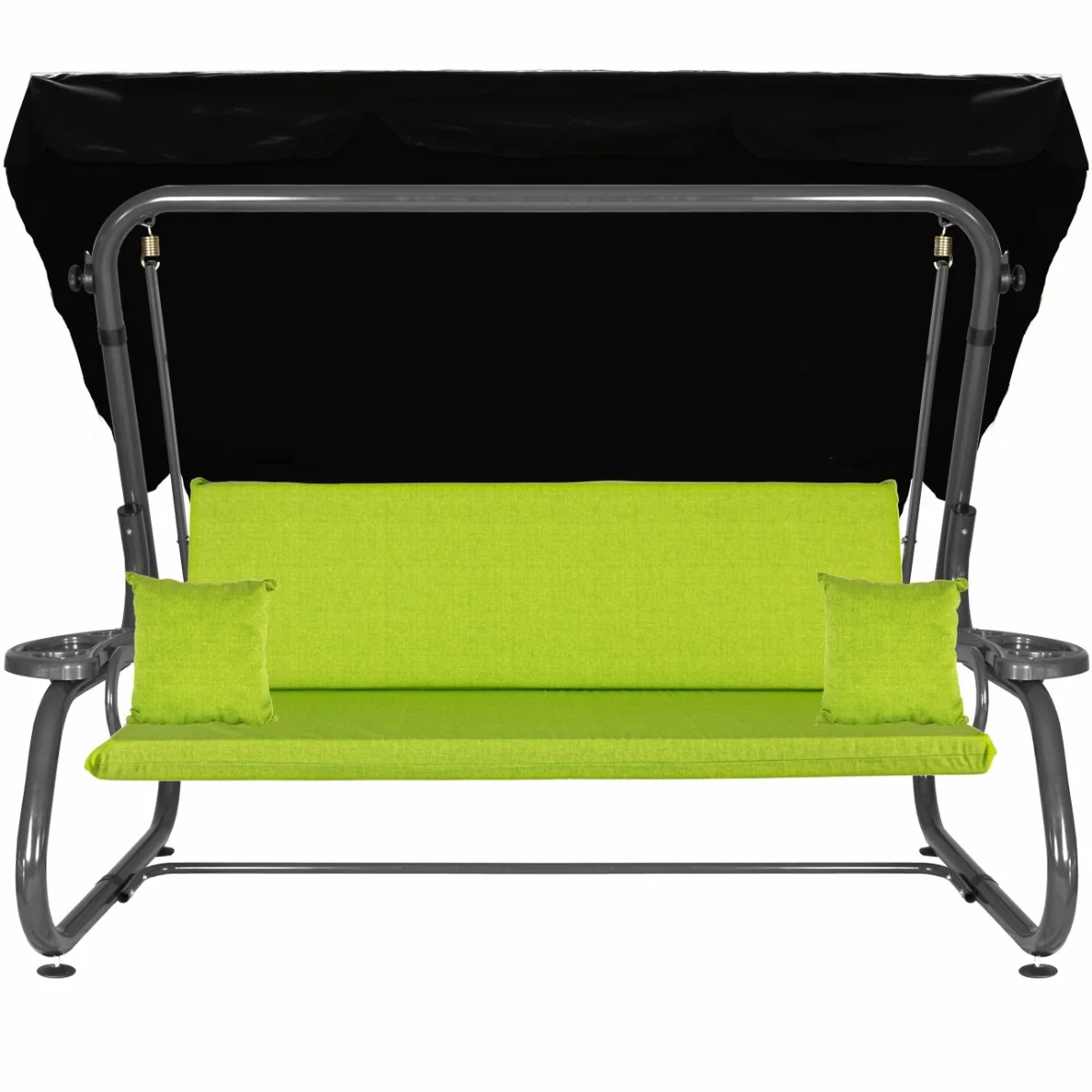 Na siedzisku i oparciu zamontowano system sprężyn z płaskownikami (ocynk), który zapewnia komfort wypoczynku i długotrwałe użytkowanie huśtawki.