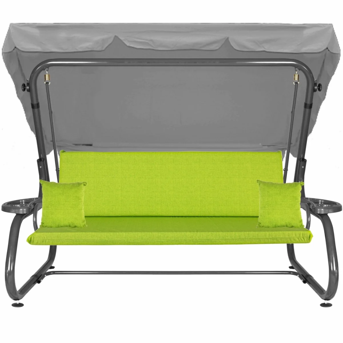 Na siedzisku i oparciu zamontowano system sprężyn z płaskownikami (ocynk), który zapewnia komfort wypoczynku i długotrwałe użytkowanie huśtawki.