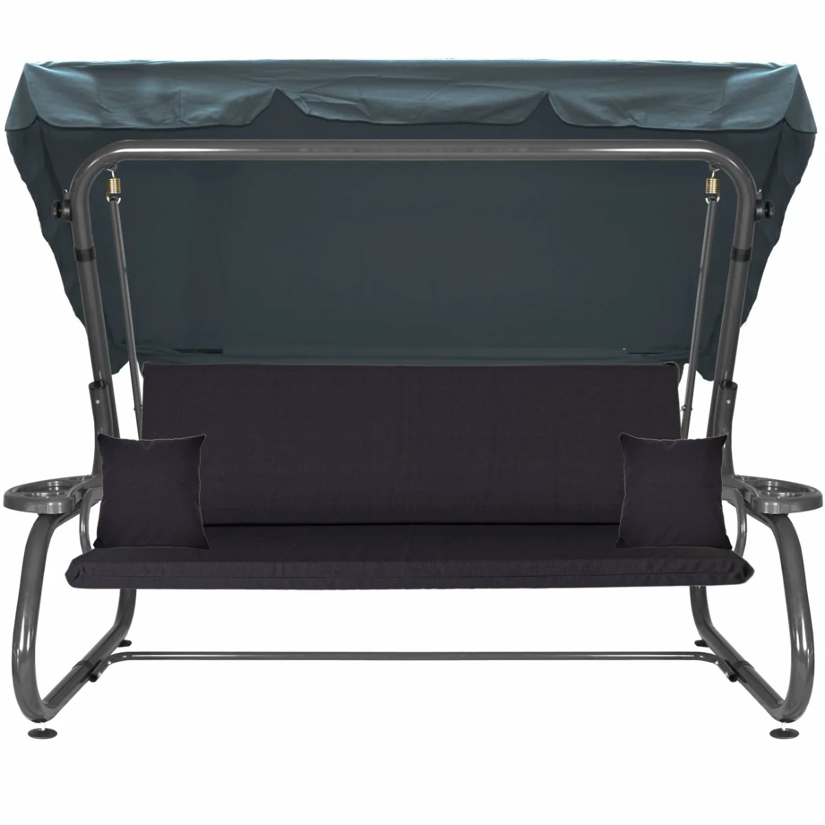 Na siedzisku i oparciu zamontowano system sprężyn z płaskownikami (ocynk), który zapewnia komfort wypoczynku i długotrwałe użytkowanie huśtawki.