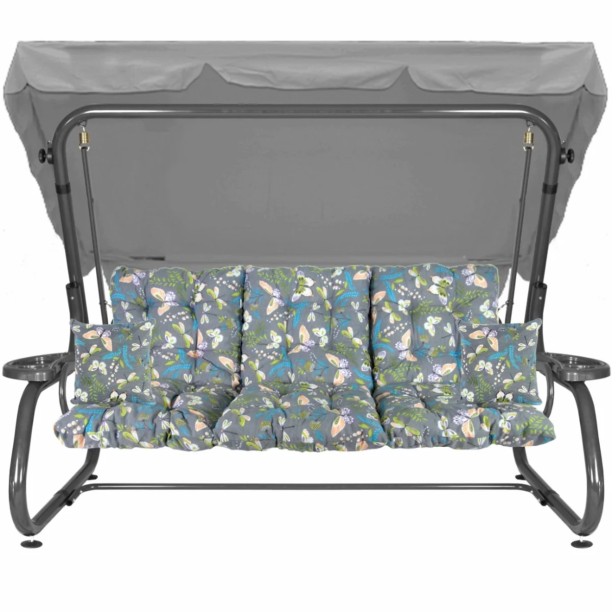 Na siedzisku i oparciu zamontowano system sprężyn z płaskownikami (ocynk), który zapewnia komfort wypoczynku i długotrwałe użytkowanie huśtawki.